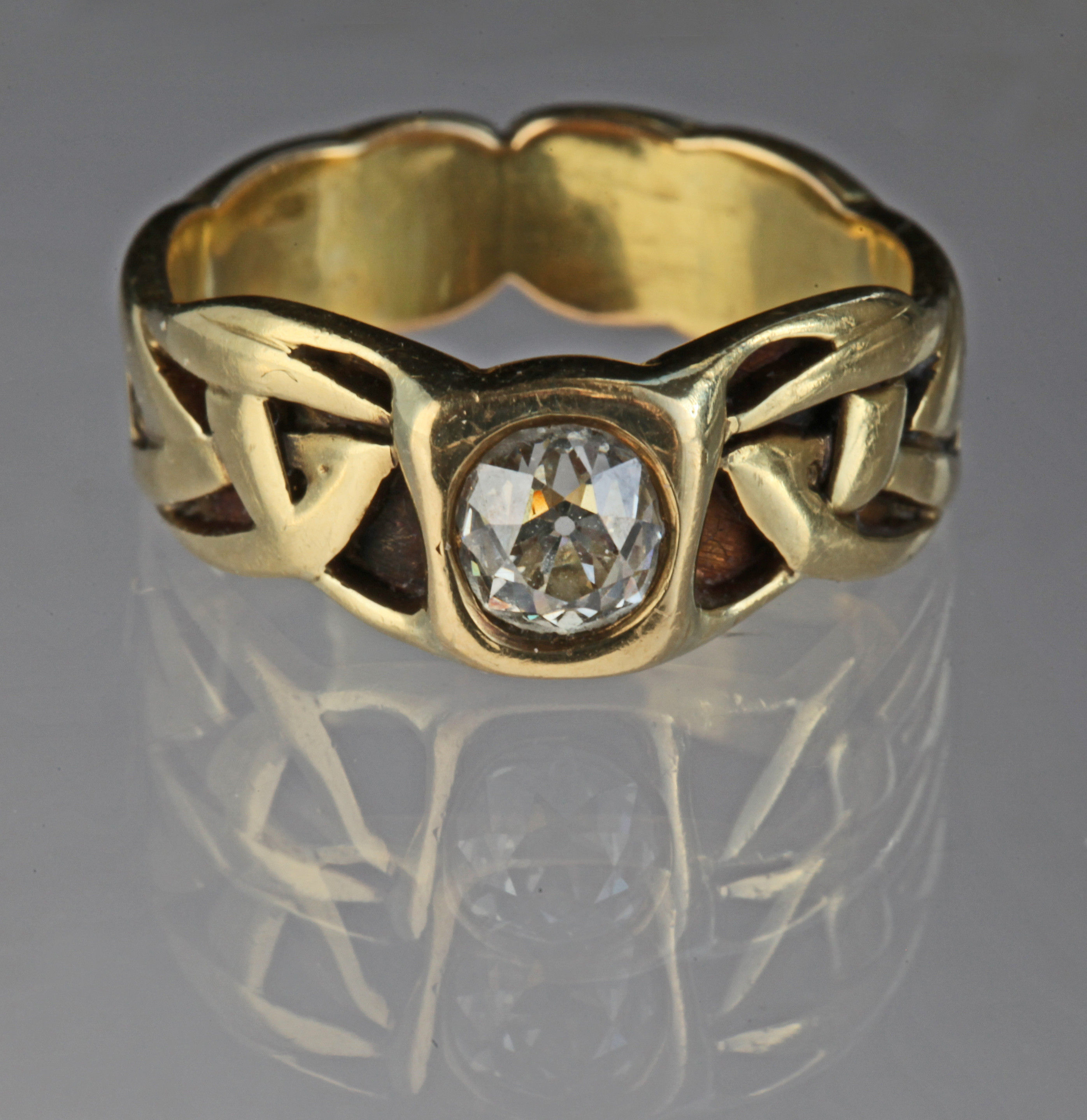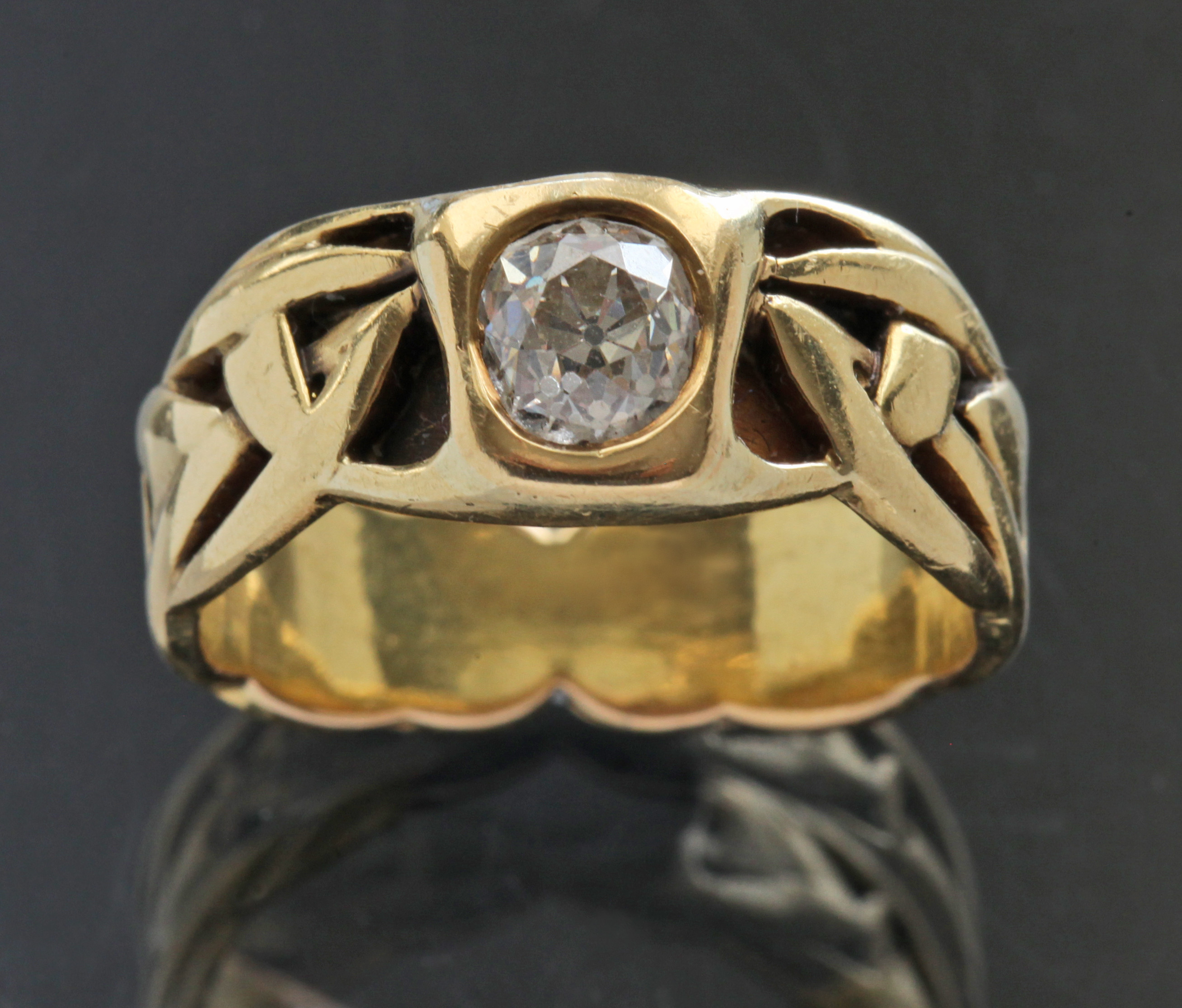 An exceptional example of Archibald Knox's jewel designs showing his distinctive celtic inspired art nouveau entrelacs.