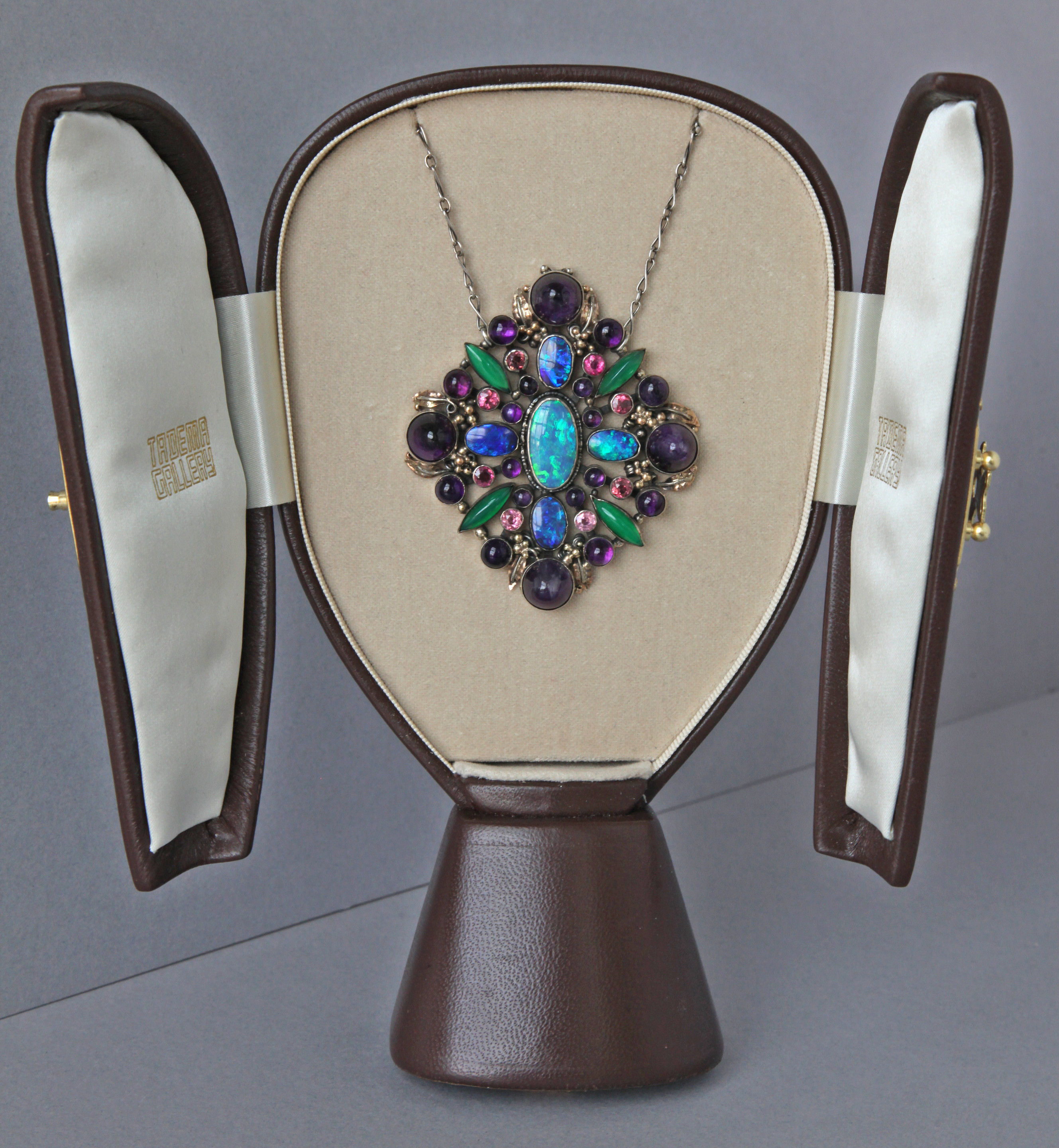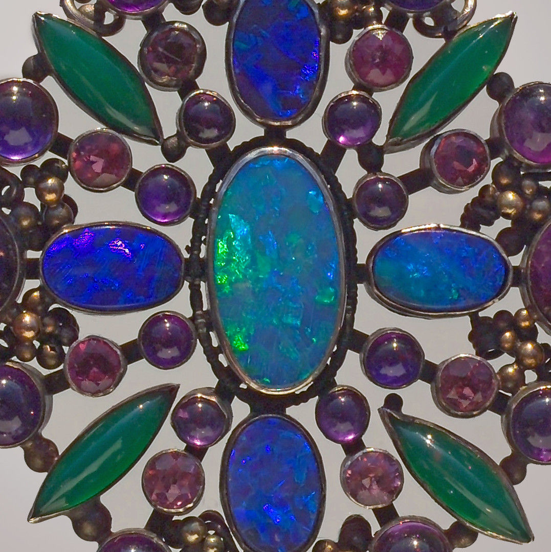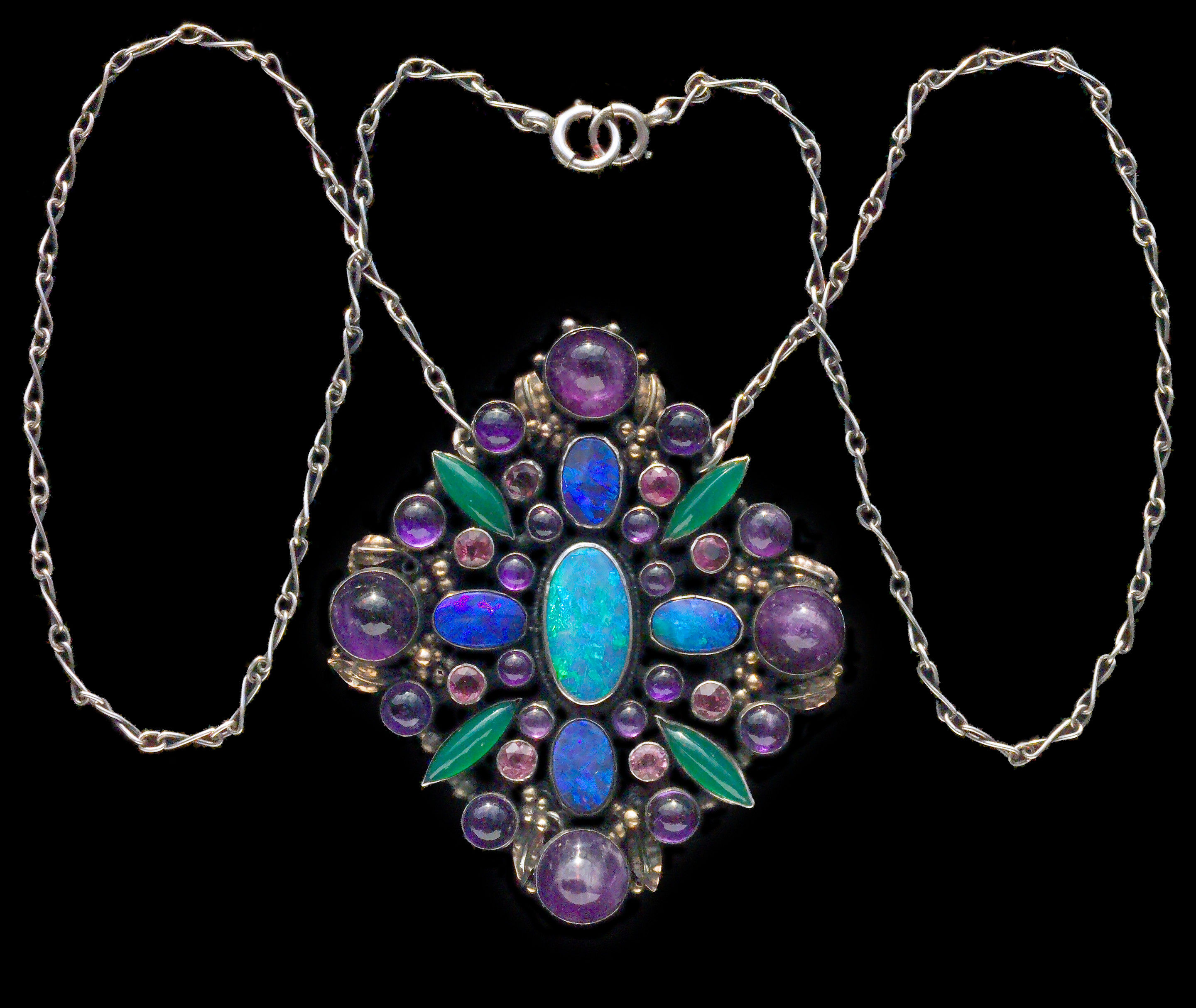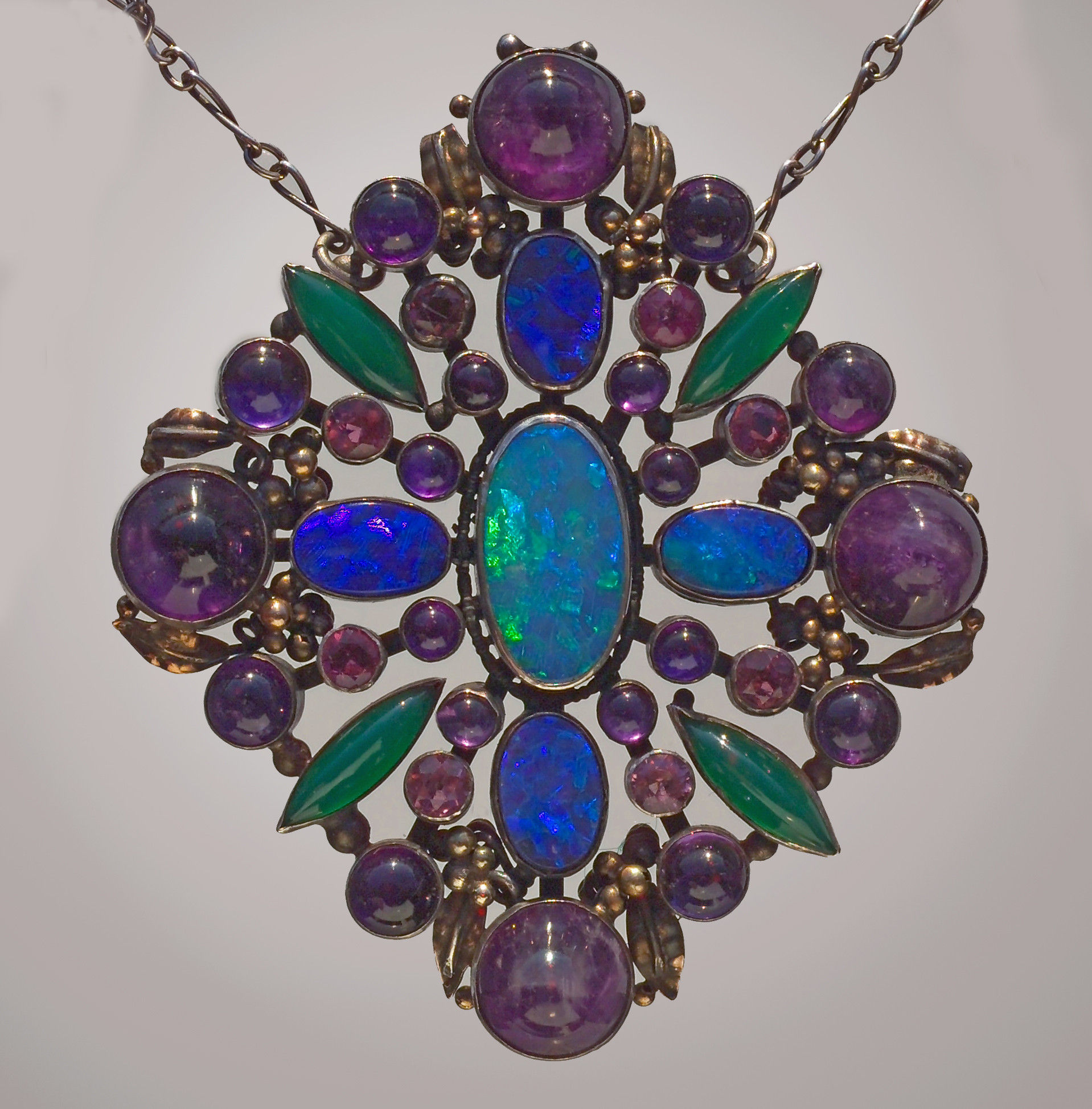 An impressive & beautiful Arts & Crafts pendant with a sumptuous collection of gemstones.