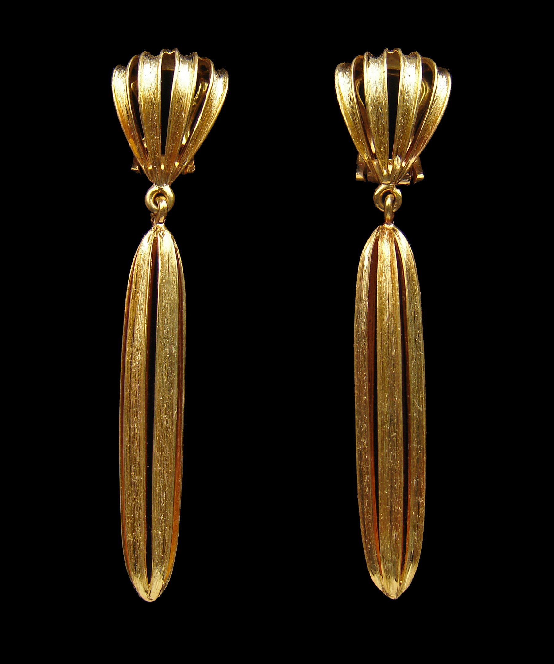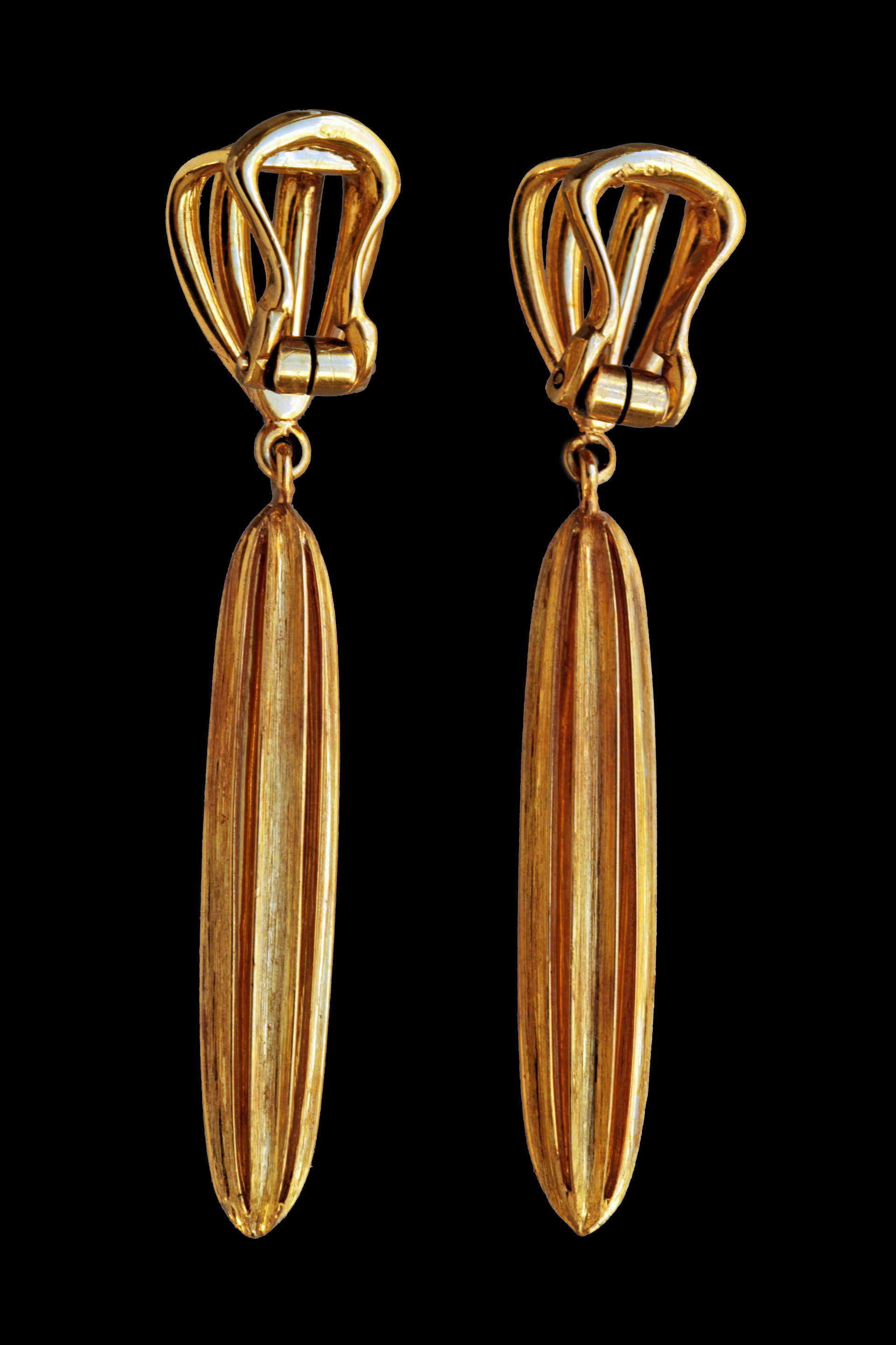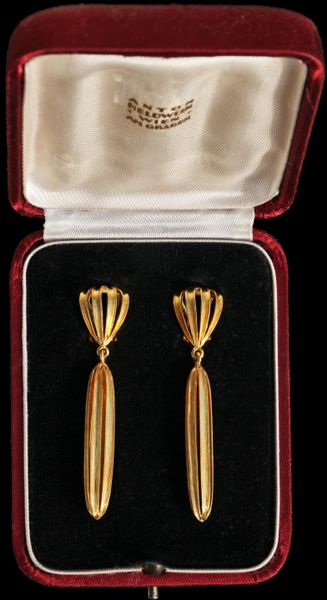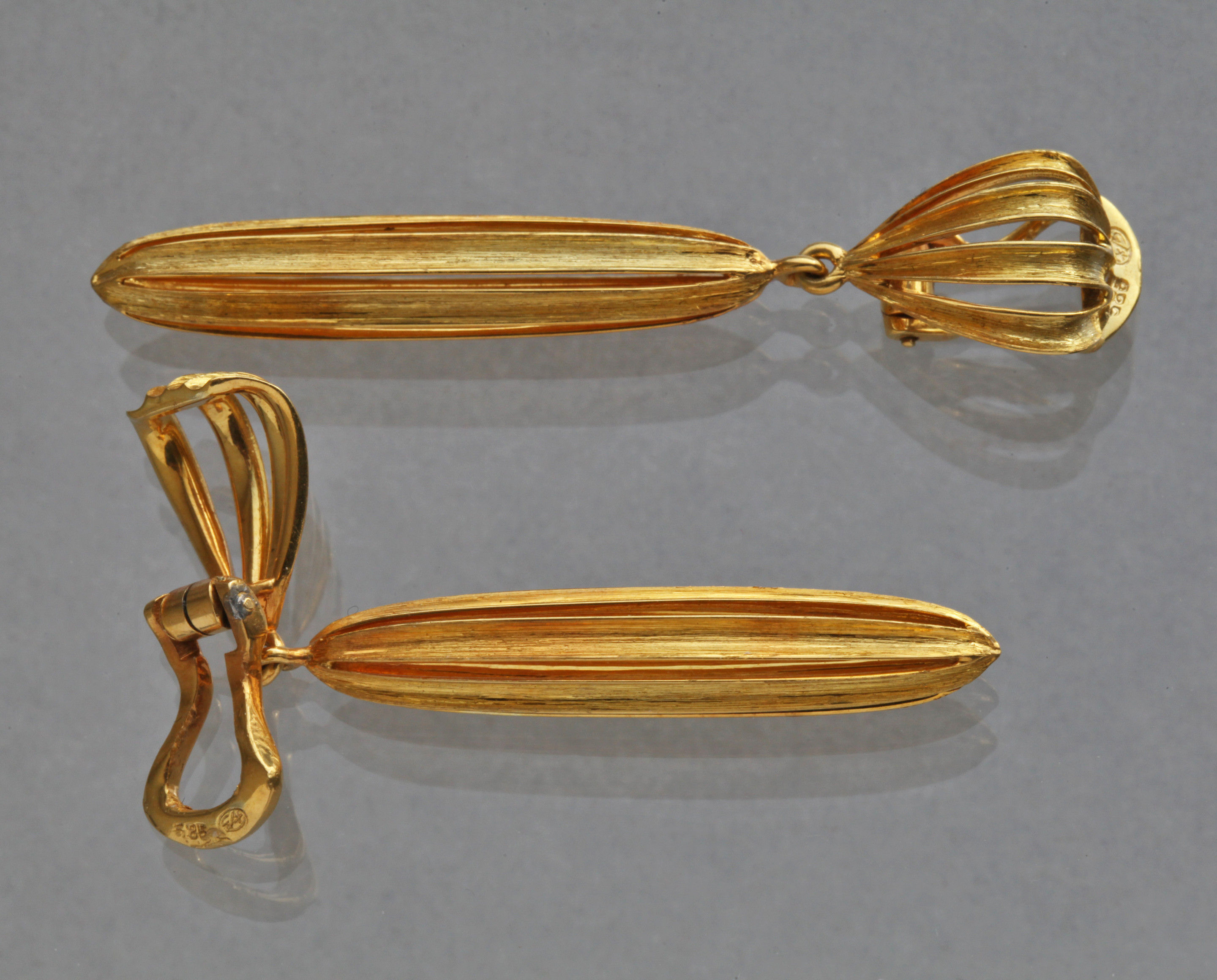 An exceptional pair of gold earrings by the Vienna Jeweler Anton Heldwein. The gorgeous fluted design echo's the 1920's Wiener Werkstätte style of Josef Hoffmann & almost certainly dates from around 1925 to the late 1930's. Clip fittings.