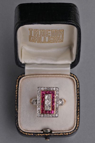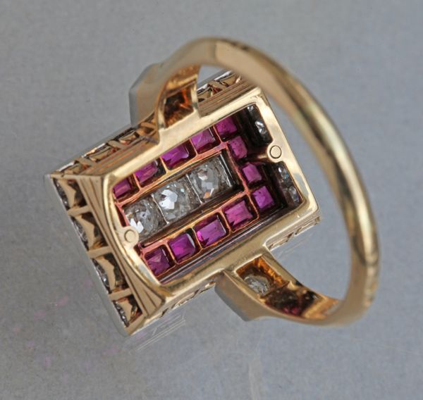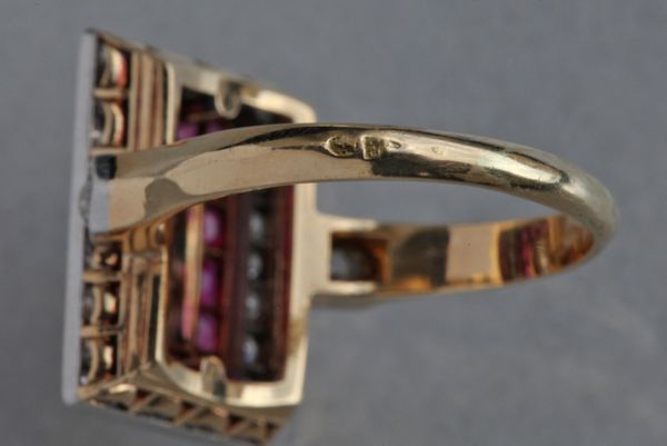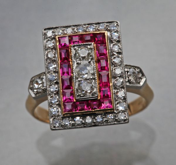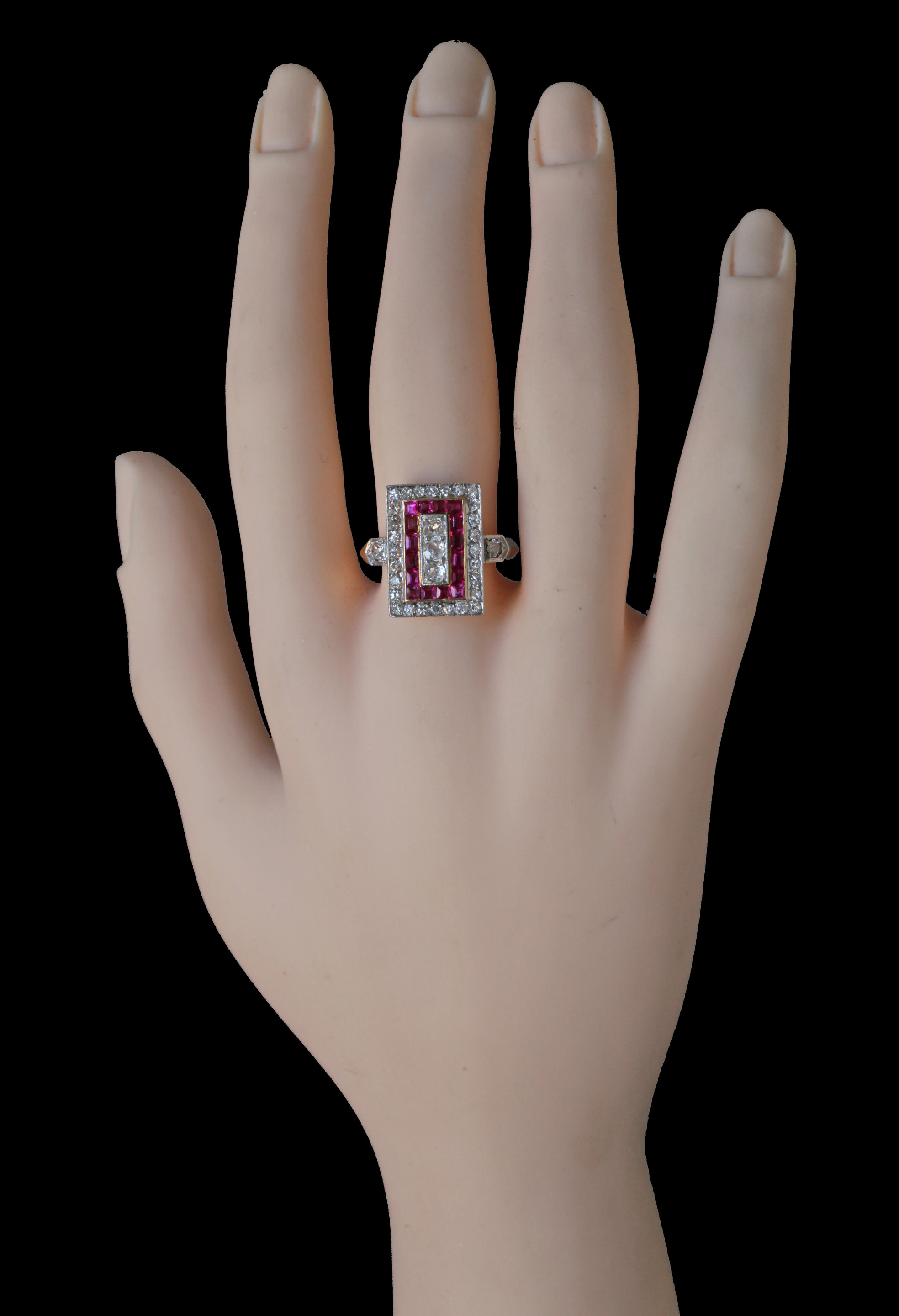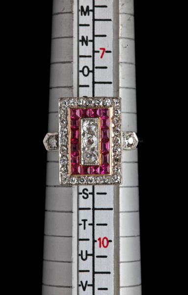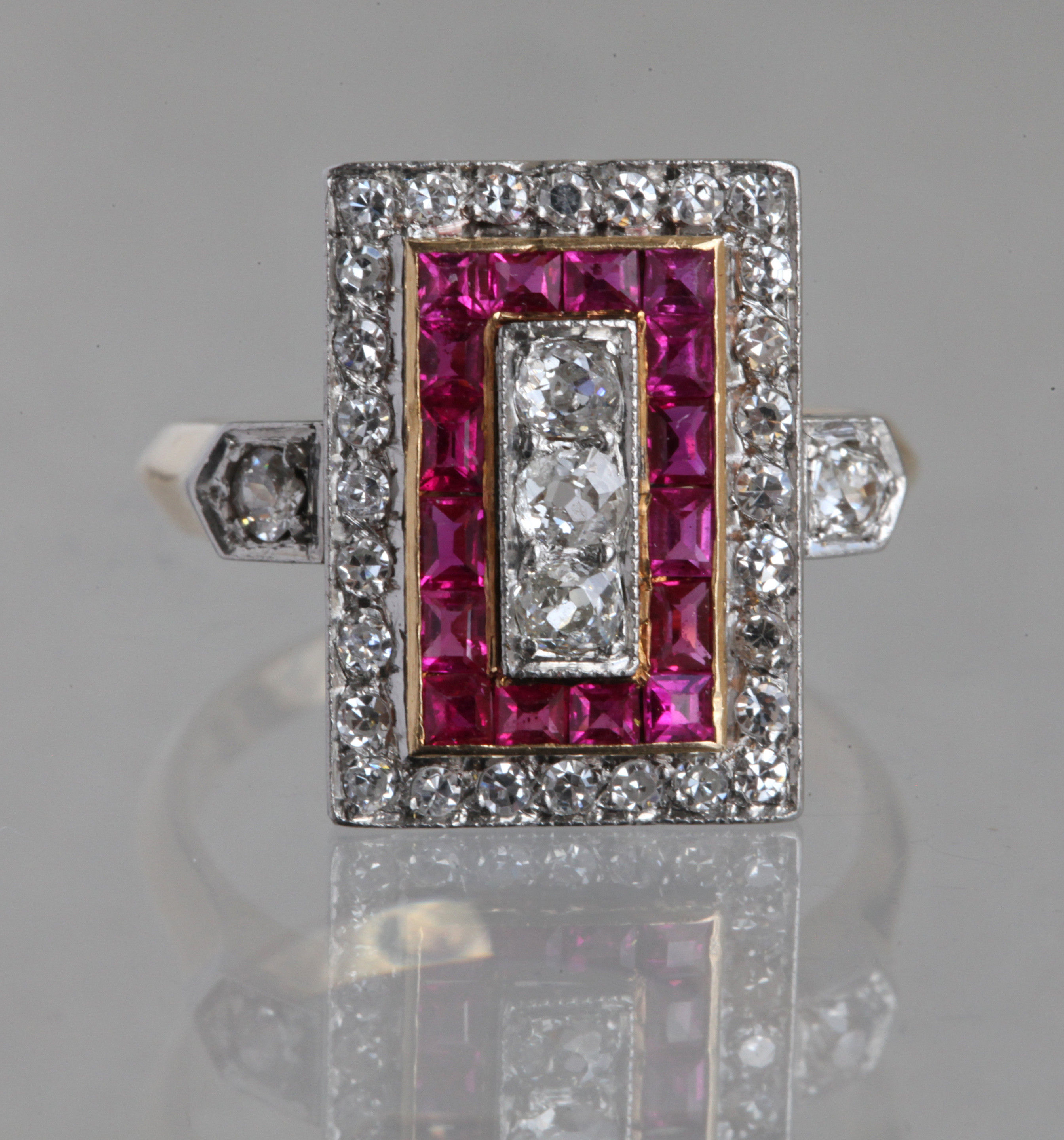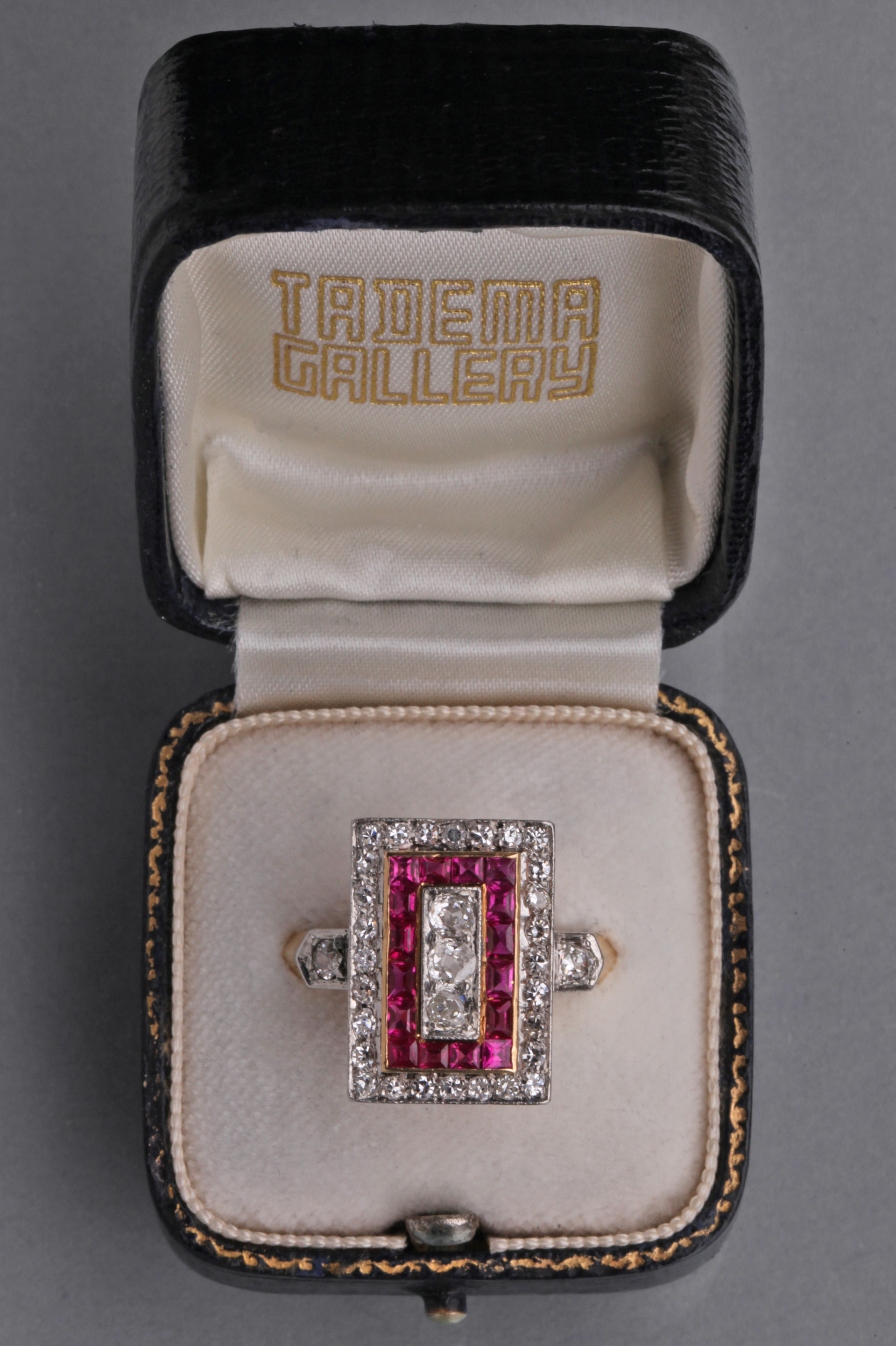 Beautiful Art Deco ruby & diamond ring of rectangular design
