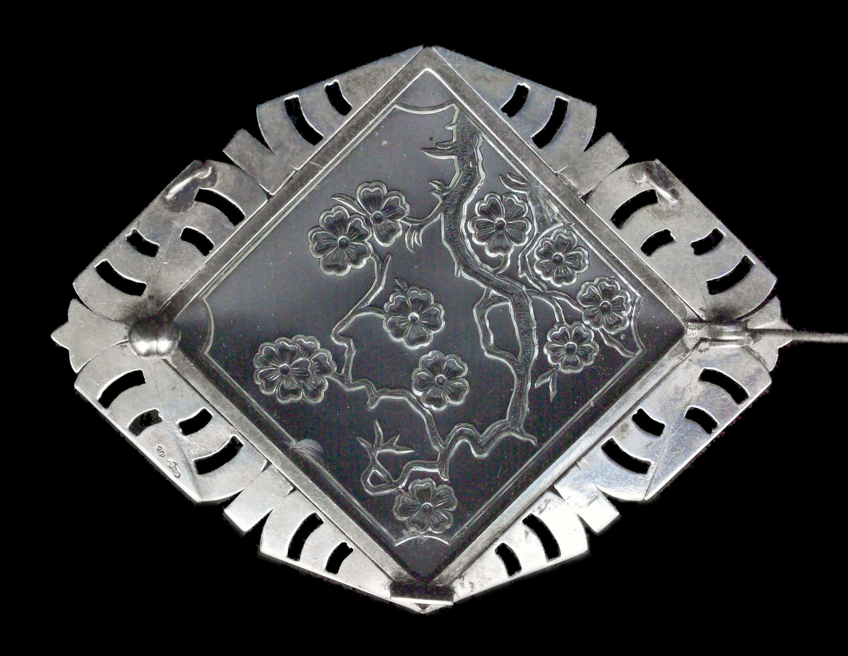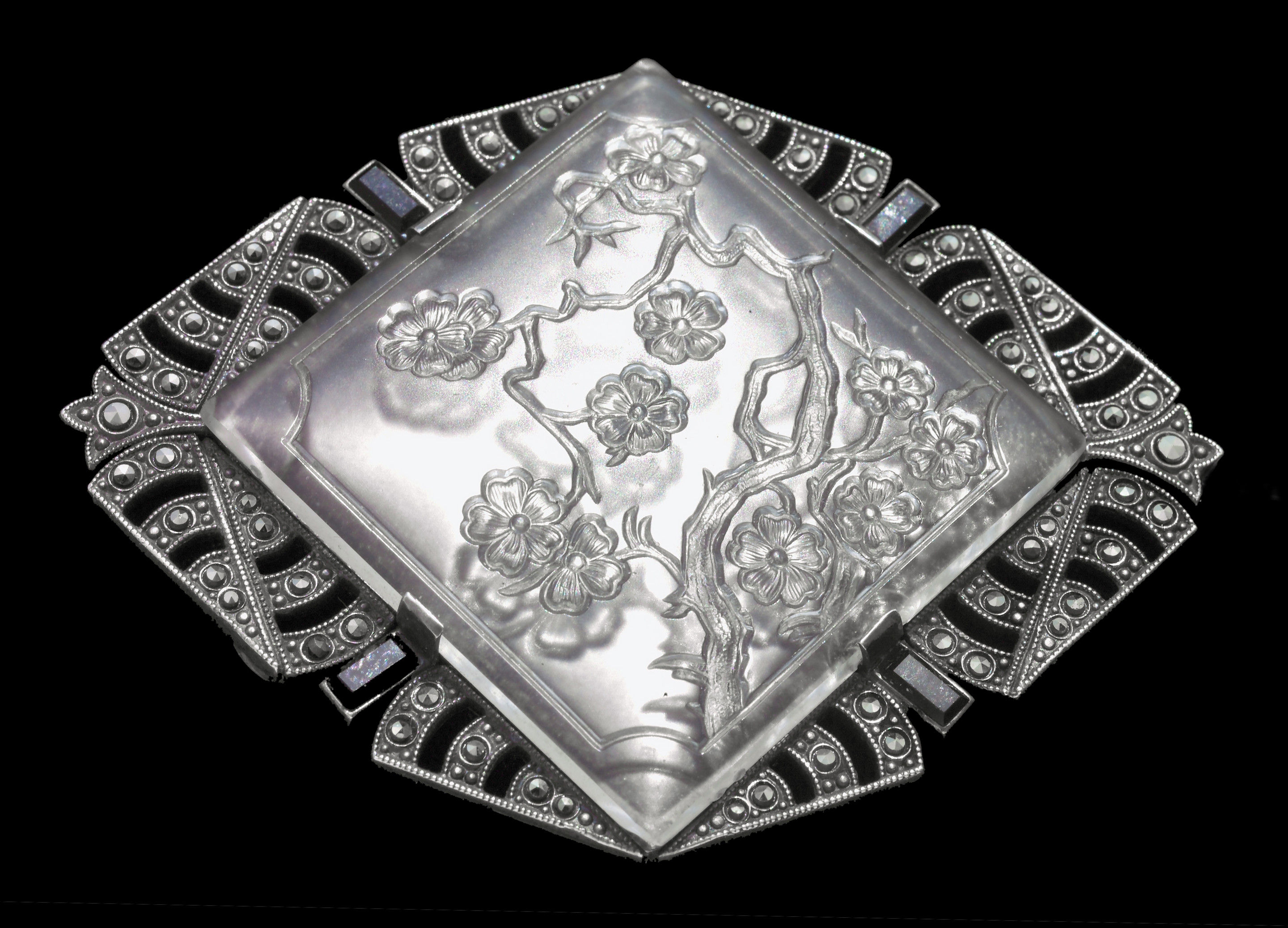 Silver, marcasite & moulded glass panel