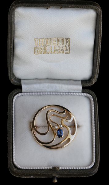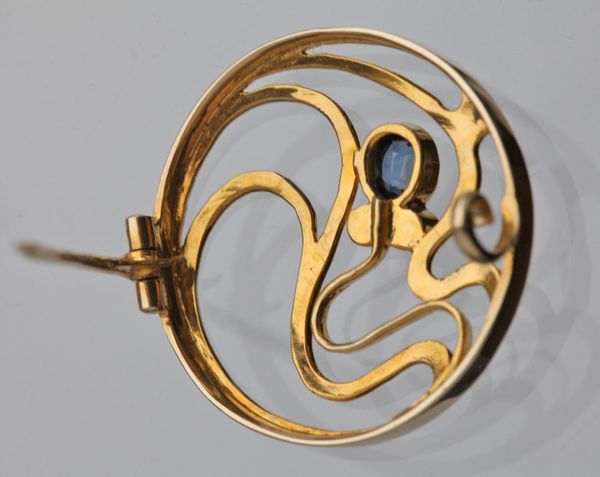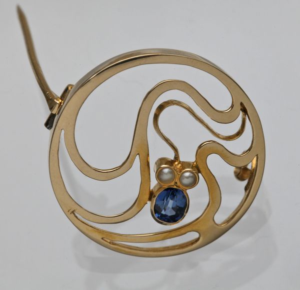 Sinuous Art Nouveau brooch with a lovely sapphire 0.25 cts approx