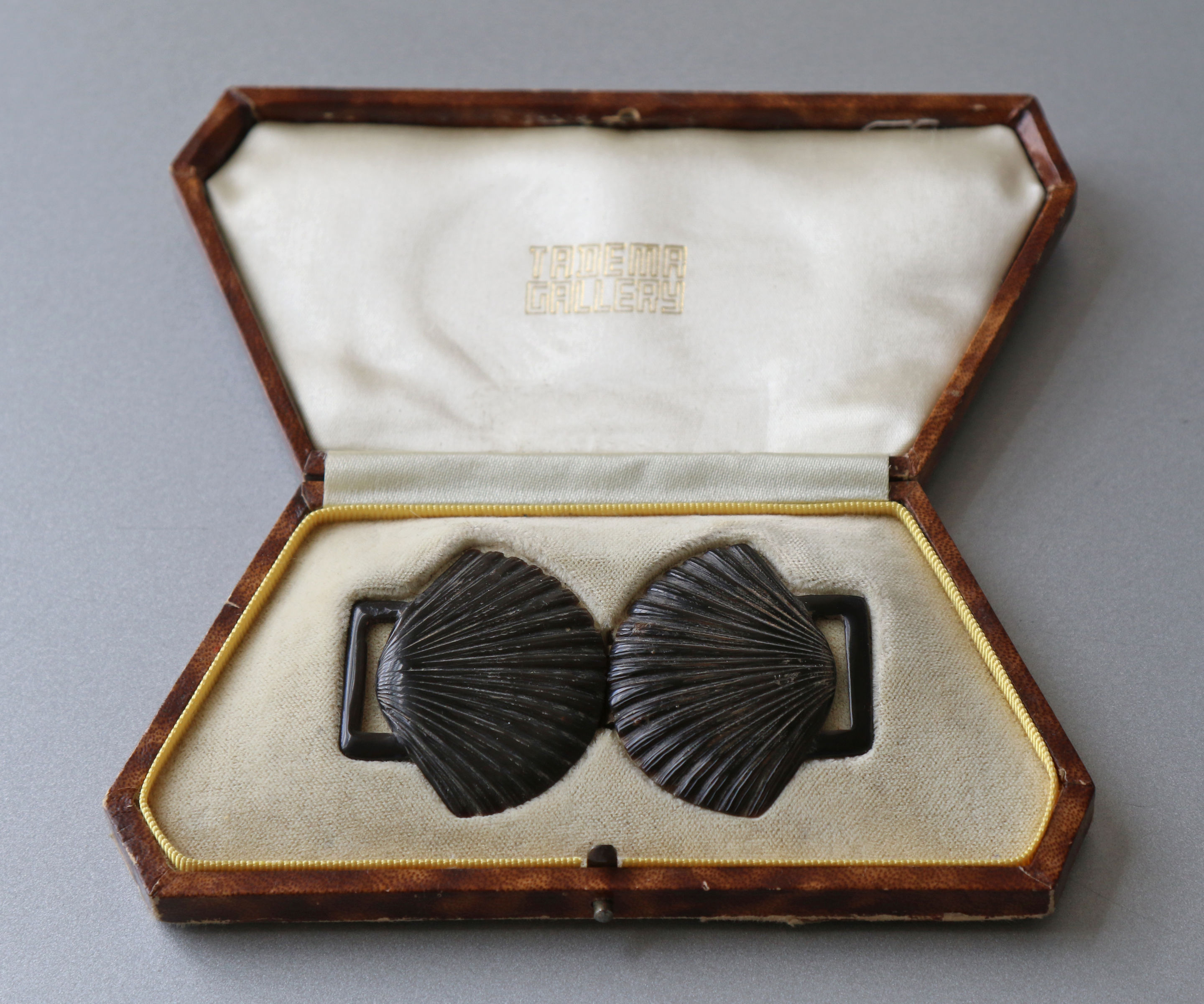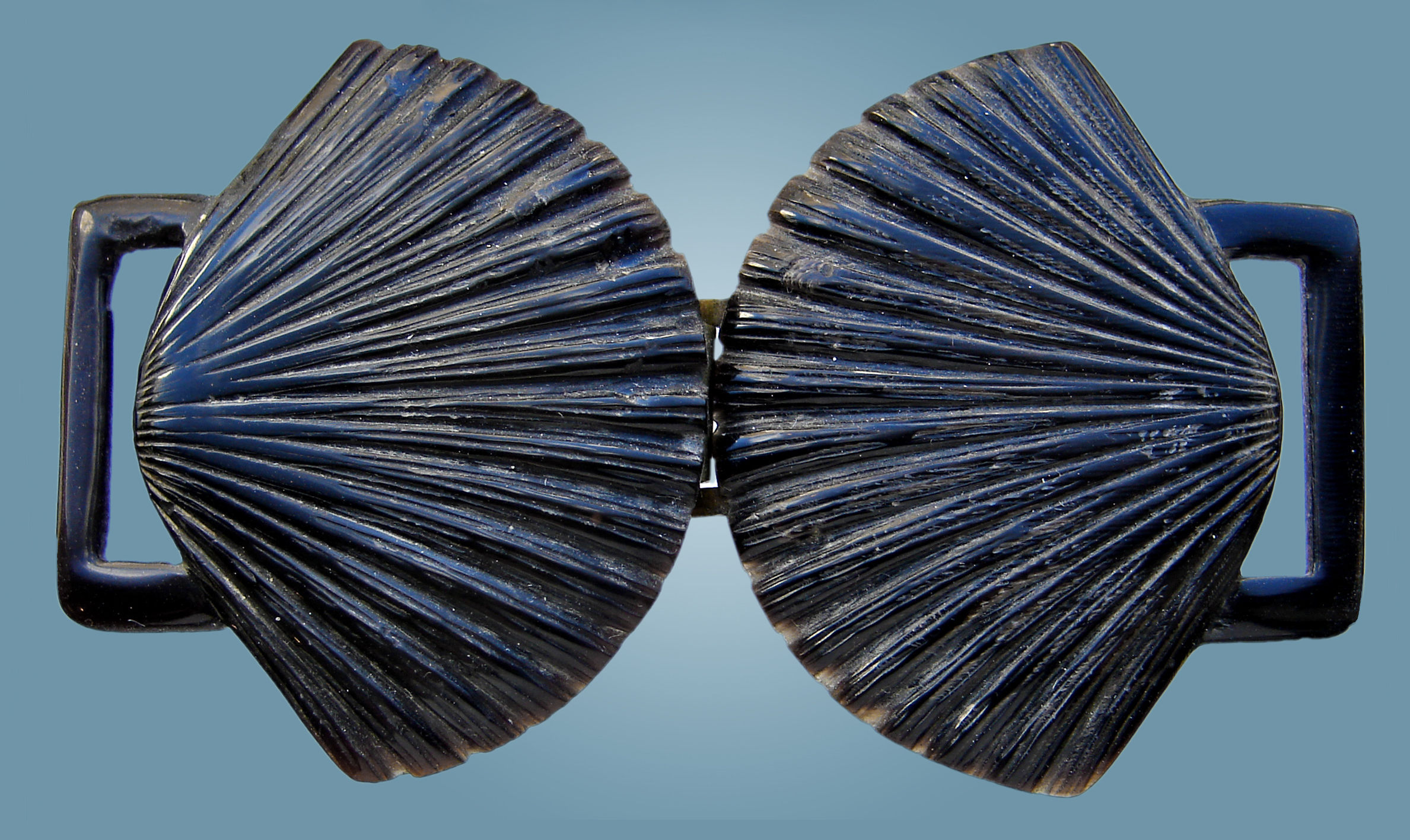 Art Nouveau Buckle by Henri Hamm in carved horn in the shape of shells