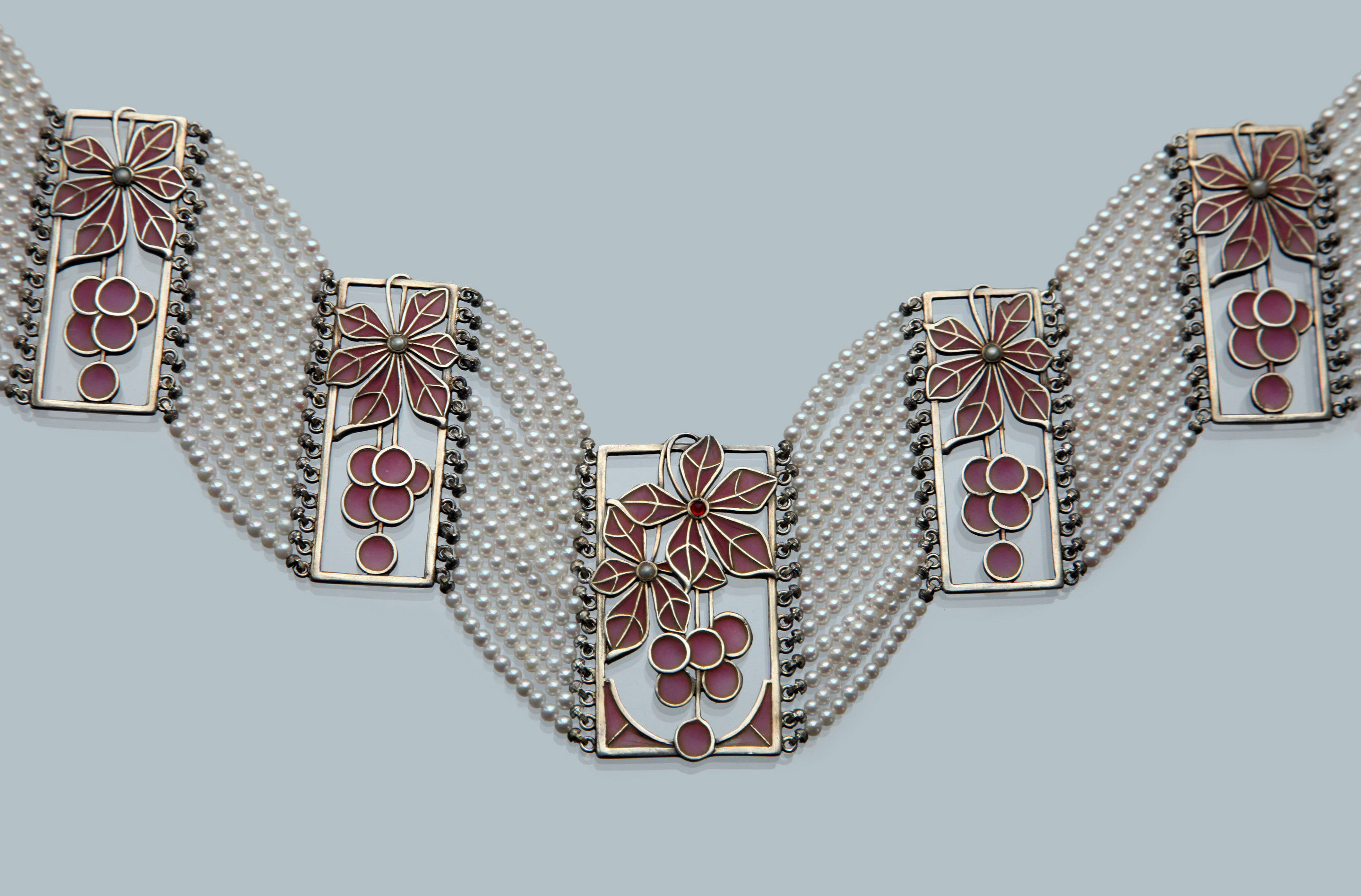 cf. Fritz Falk, Jugendstil-Schmuck // Art Nouveau Jewellery from Pforzheim, 2009, p.193 cat no KH 26 for same collier without pearls.