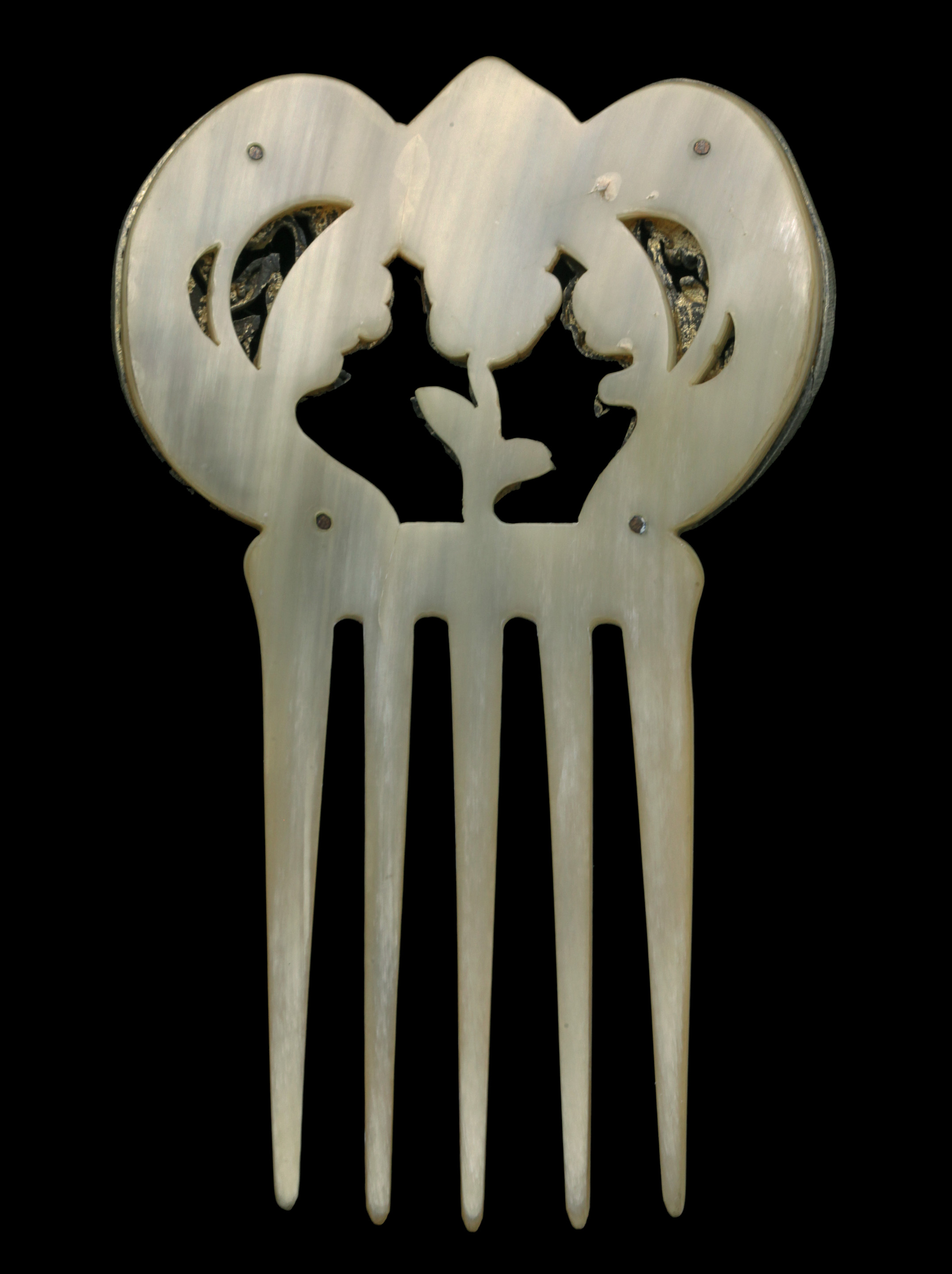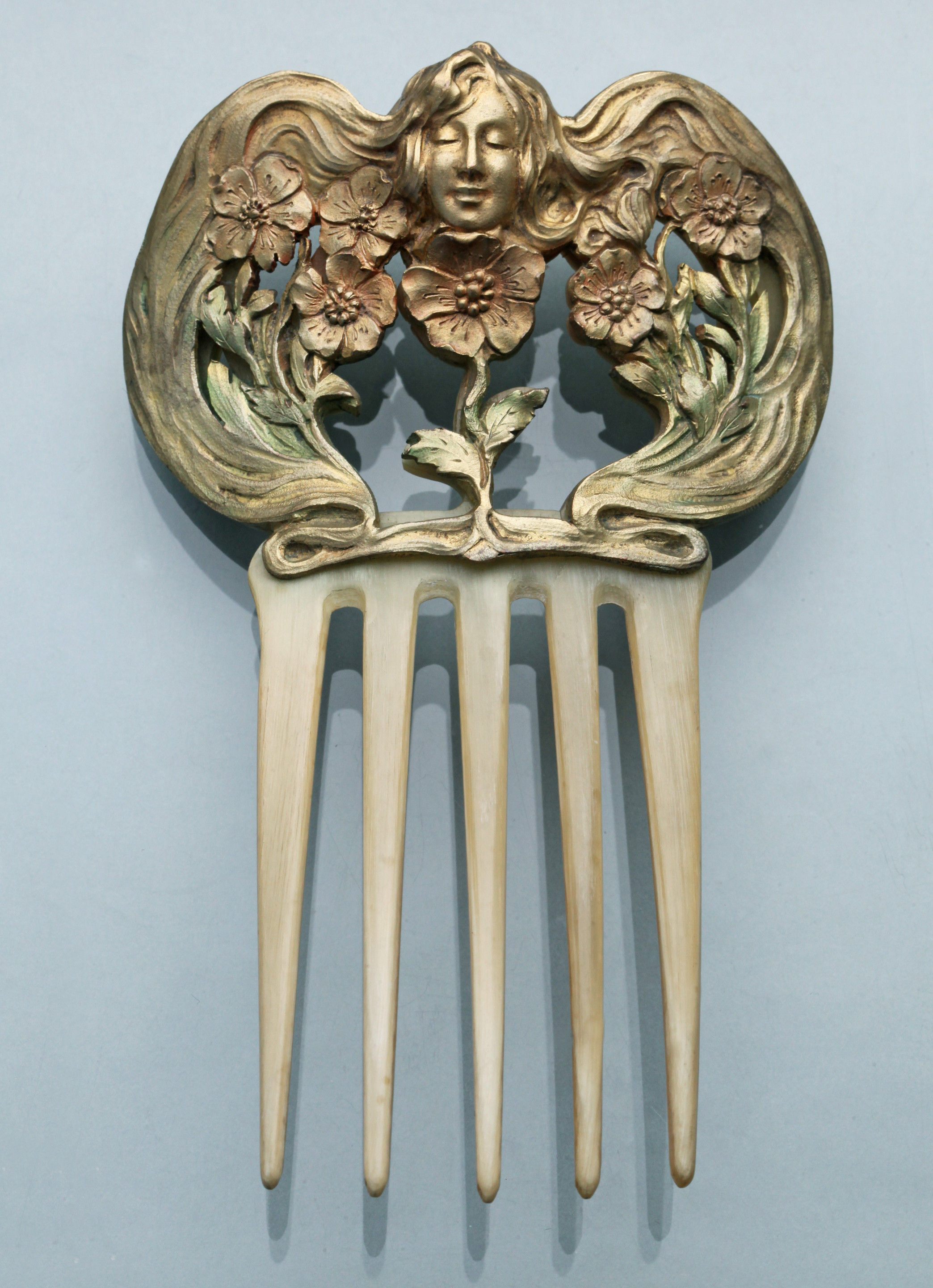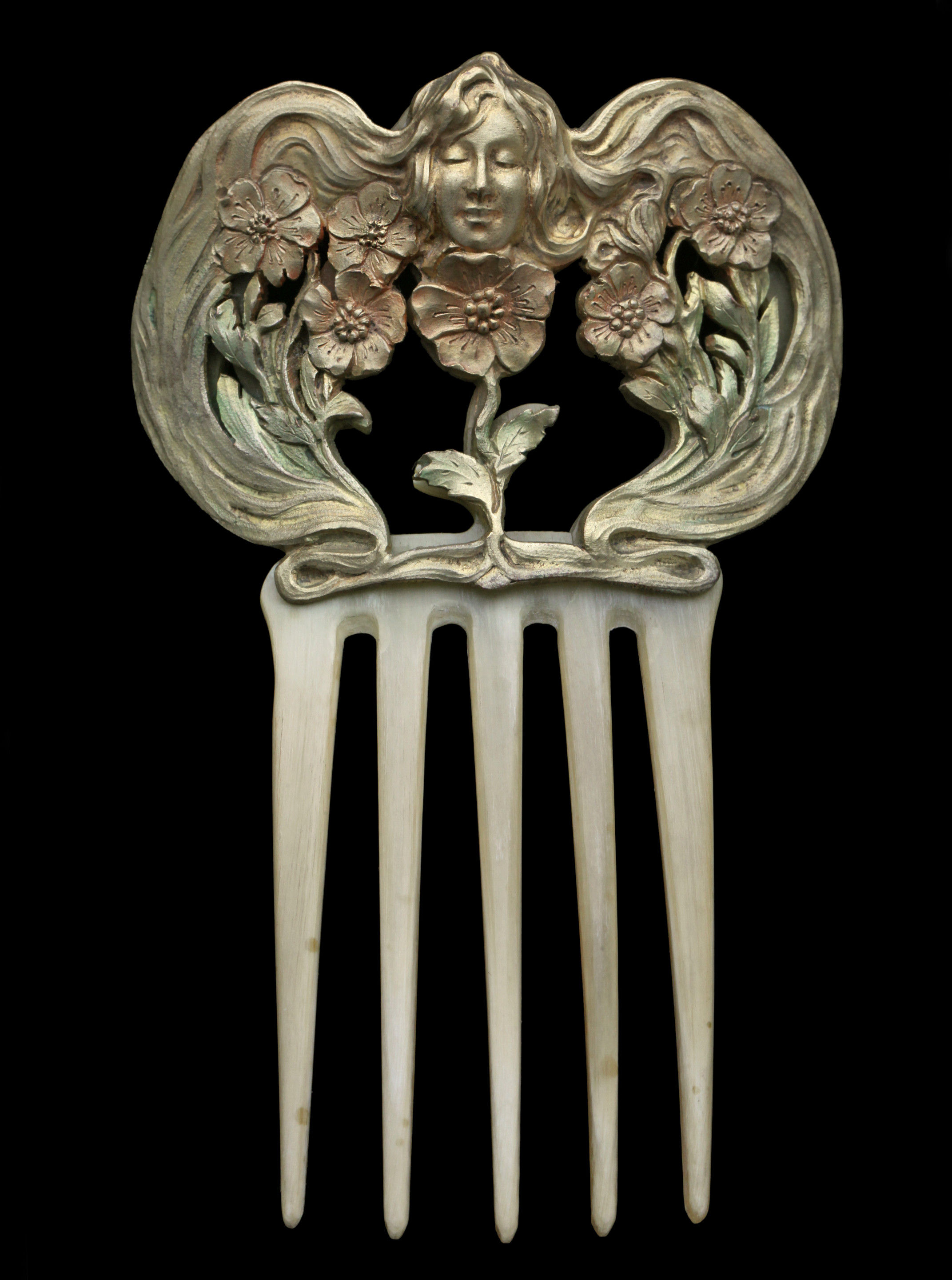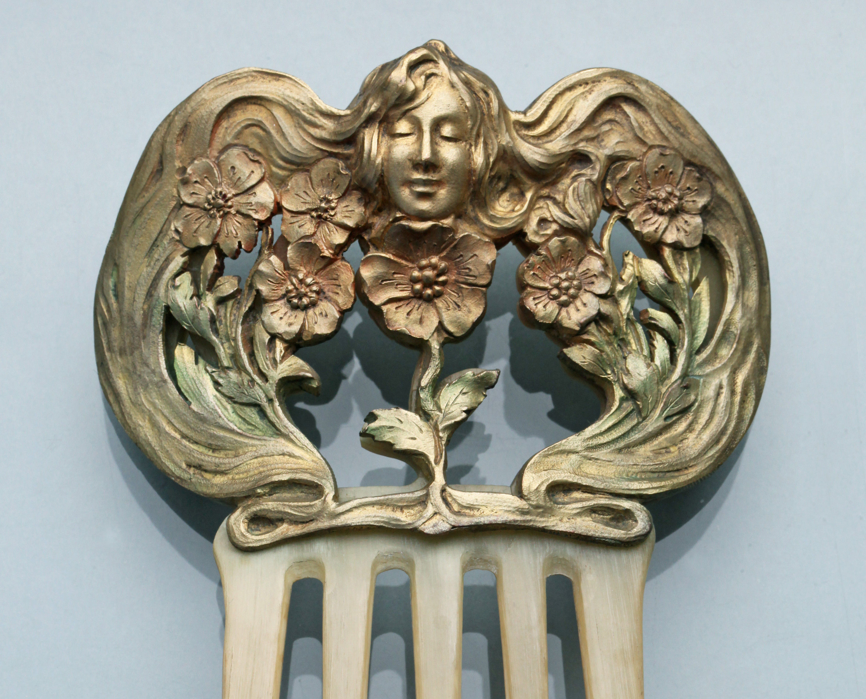 Mucha Style Art Nouveau comb with gilded copper heightened with colour