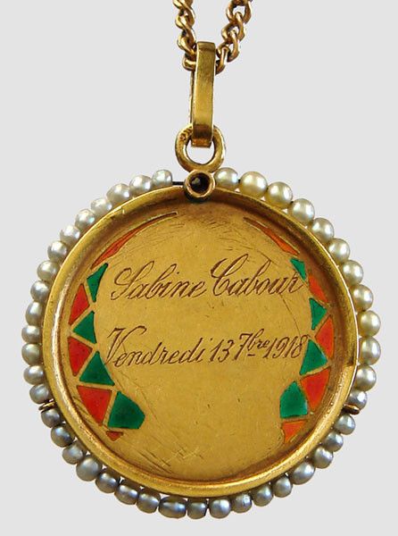 Marks | The reverse engraved: 'Sabine Cabour, Vendredi 13 Fbre, 1918' |