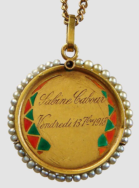 | Marks | The reverse engraved: 'Sabine Cabour, Vendredi 13 Fbre, 1918' |