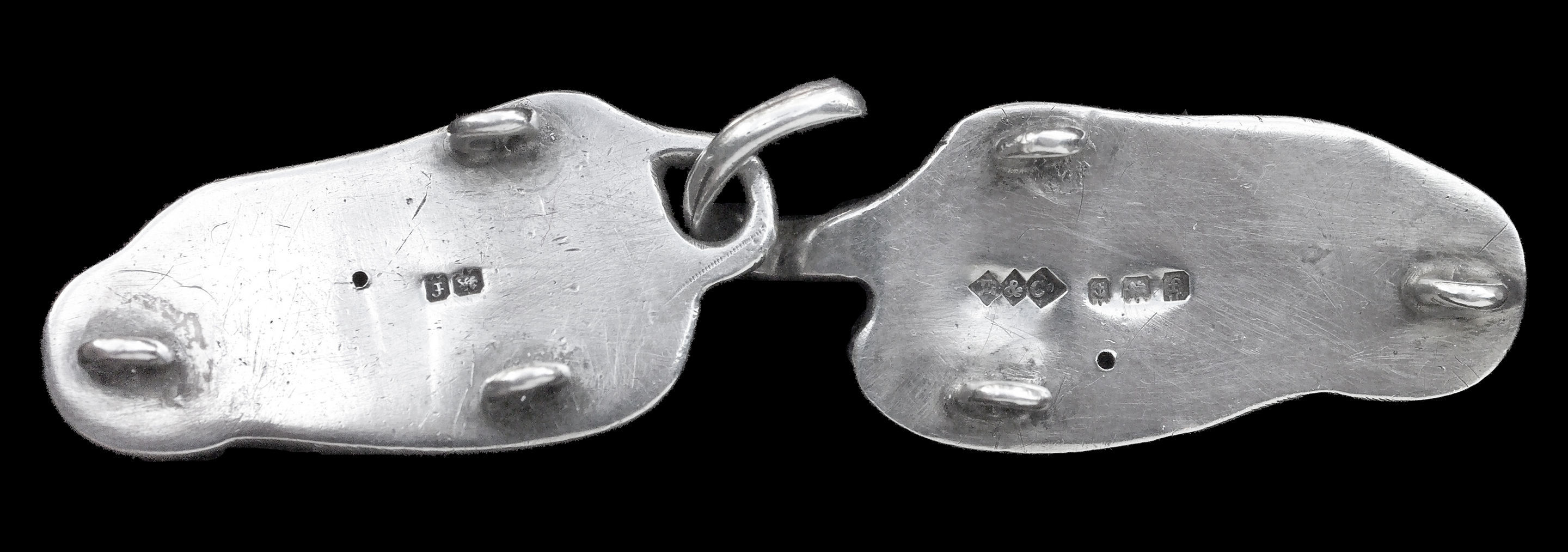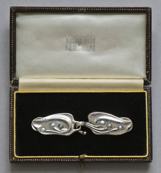 An unusual Liberty & Co 'Pea Pod' Cloak Clasp in silver & pearl