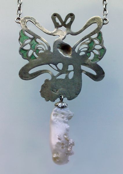 Gilded silver, plique-à-jour enamel, pearl