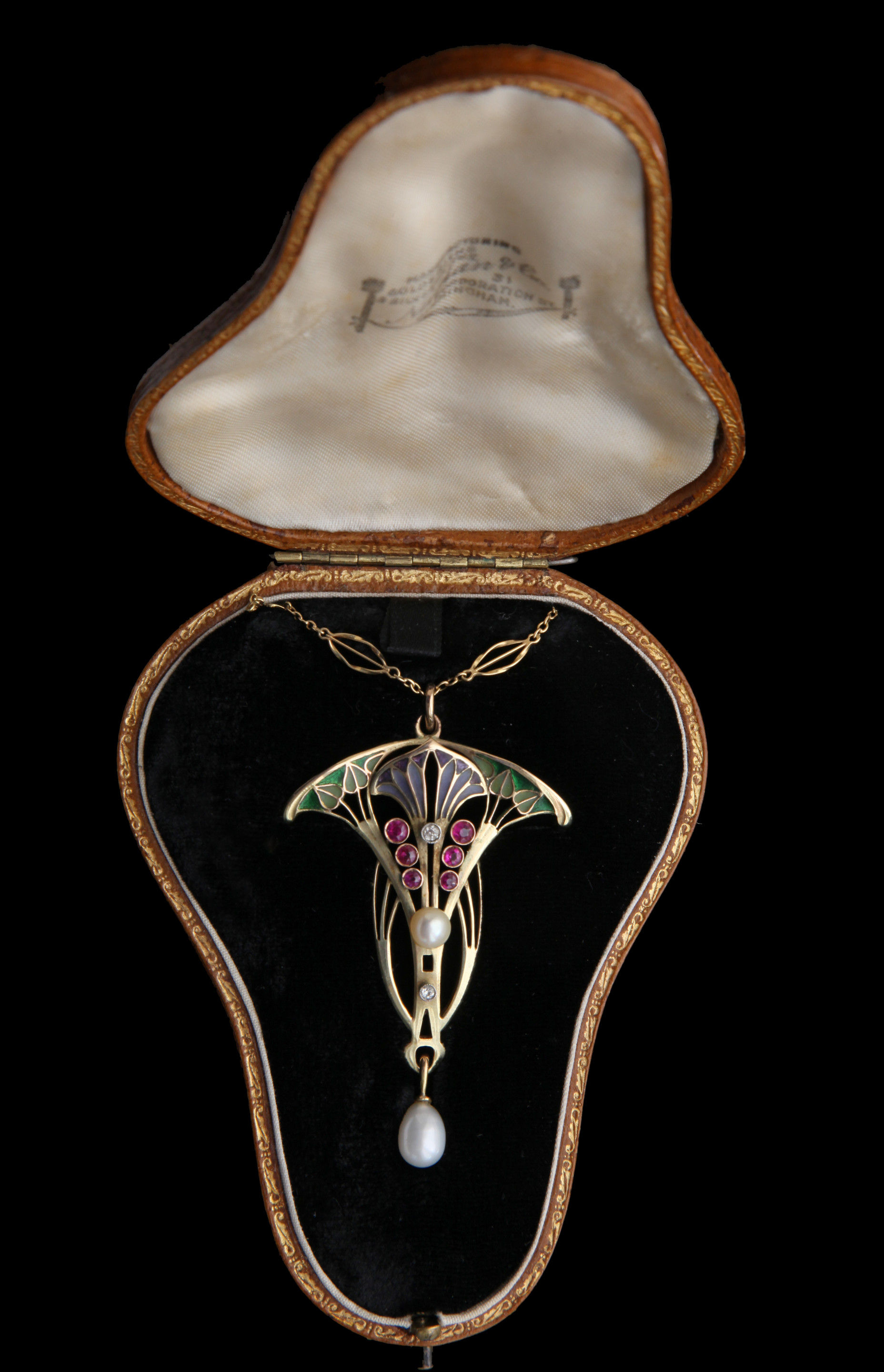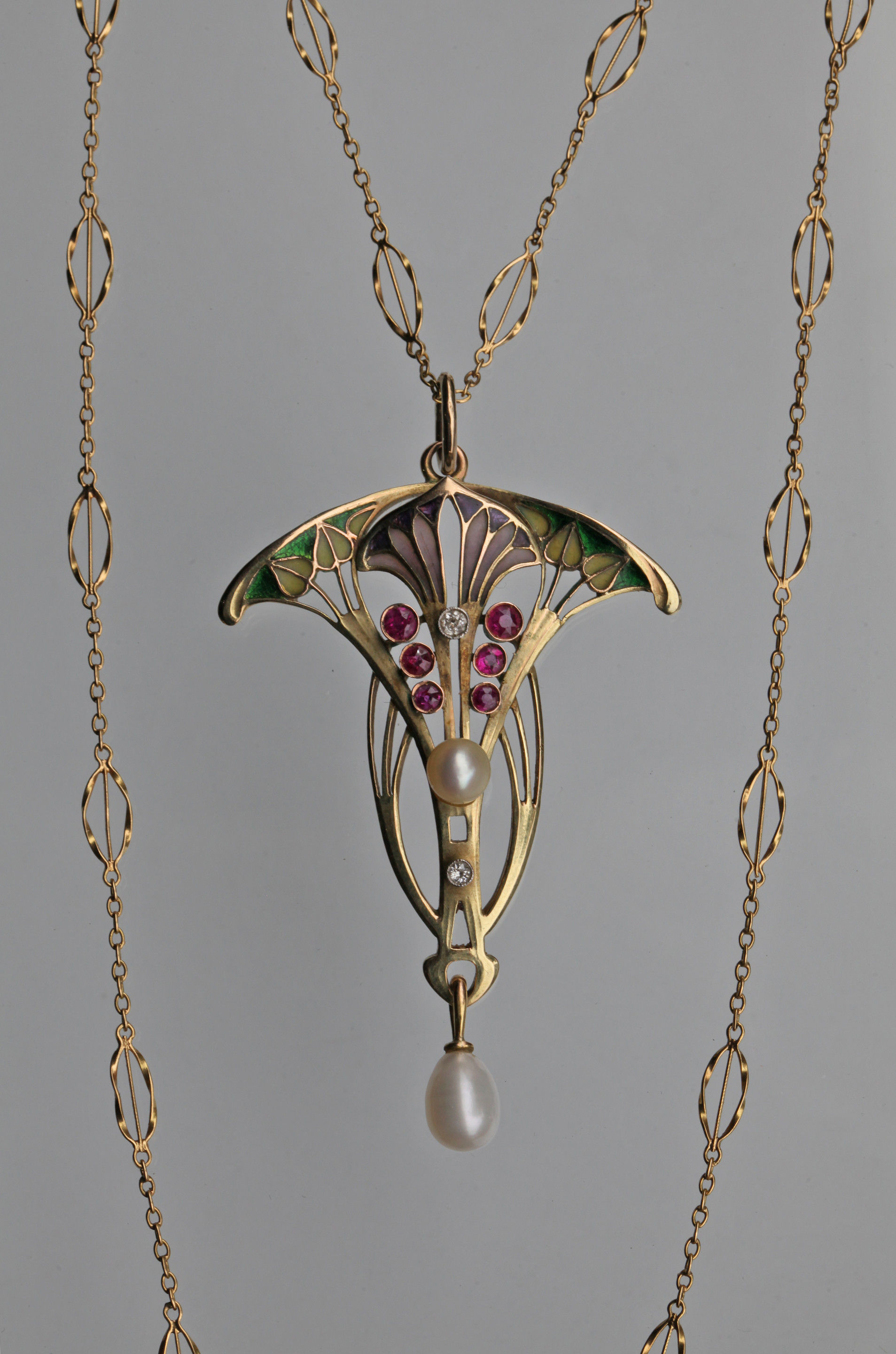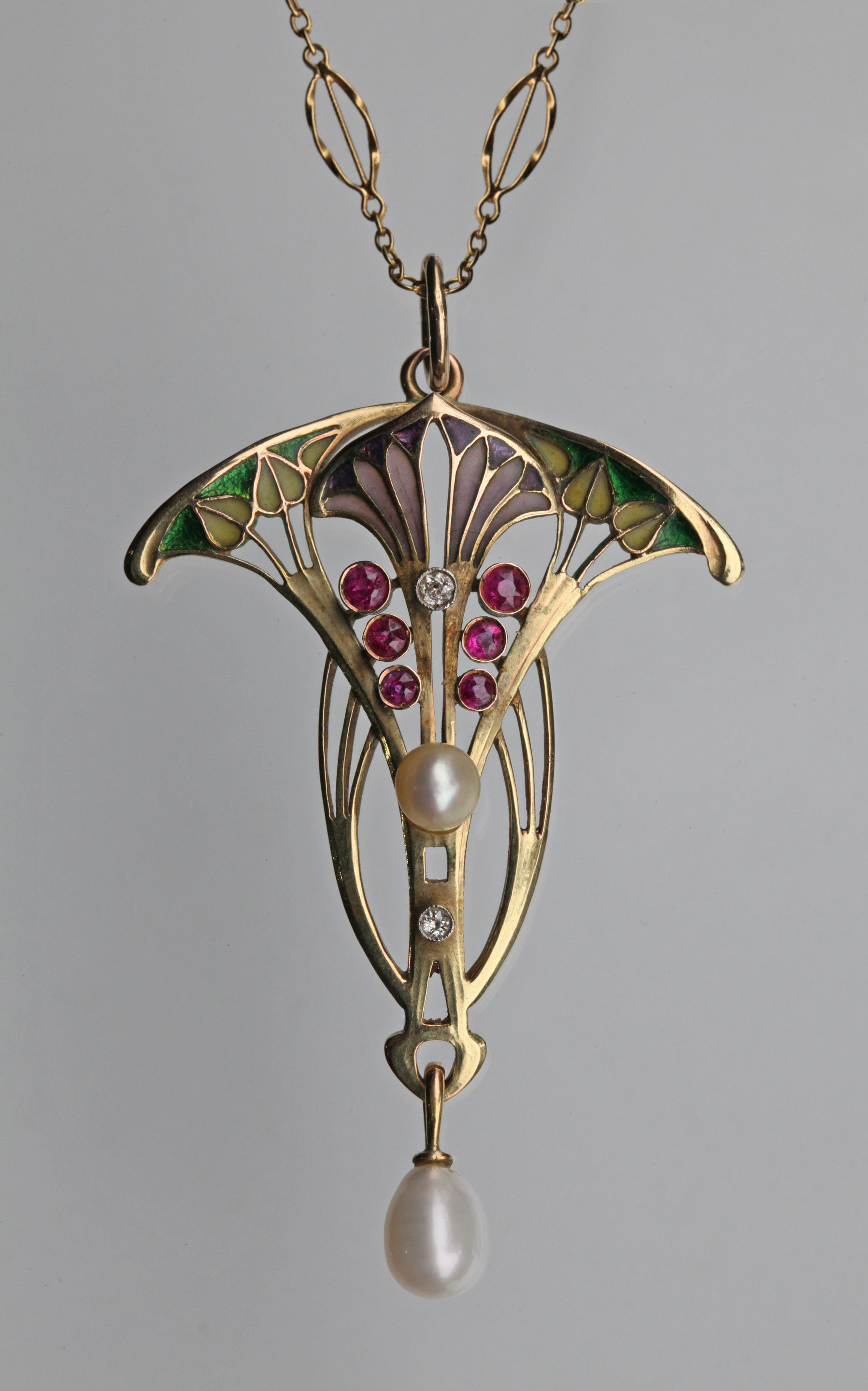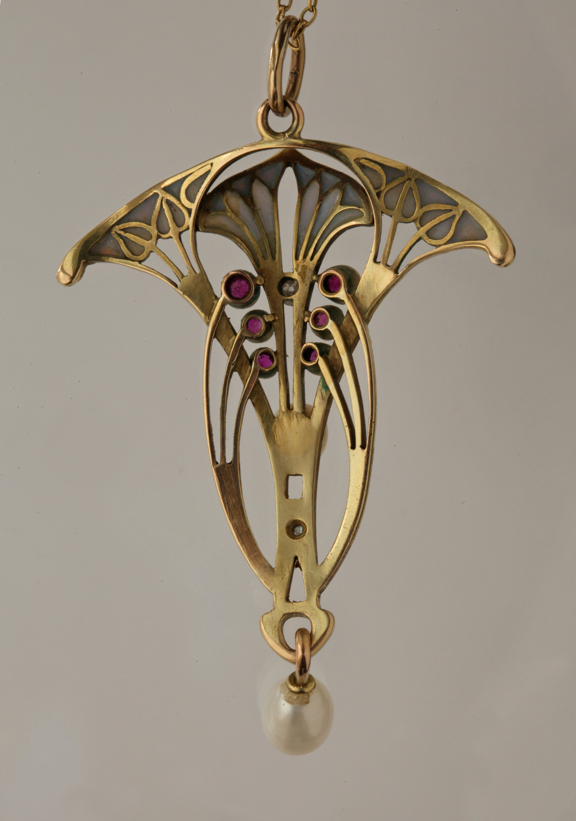 Gold, plique a jour enamel, rubies & diamonds