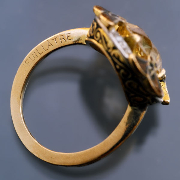 Gold, enamel, topaz & diamond.