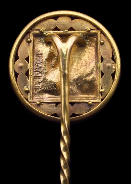 Marks | Signed verso: ‘J.DAMPT’ The pin stamped with French assay mark & ‘CR’ for Charles Rivaud, maker |