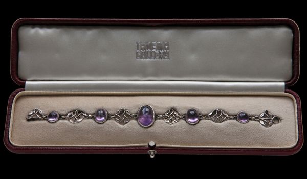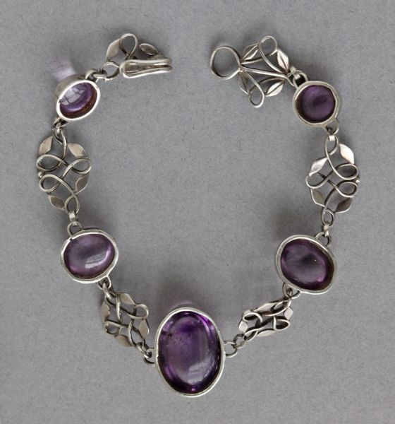 A pretty Arts & Crafts silver and amethyst bracelet by Arthur and Georgie Gaskin