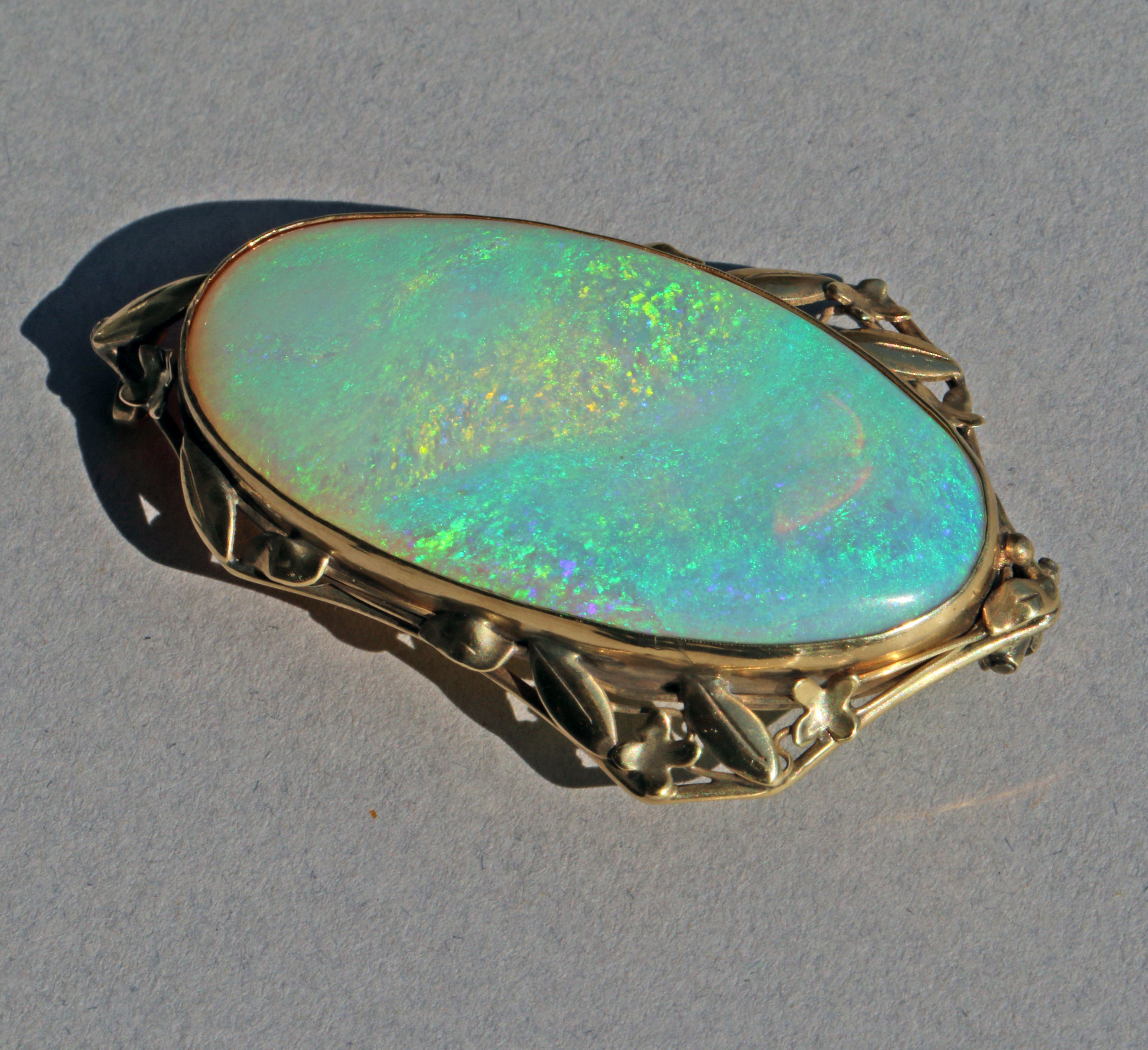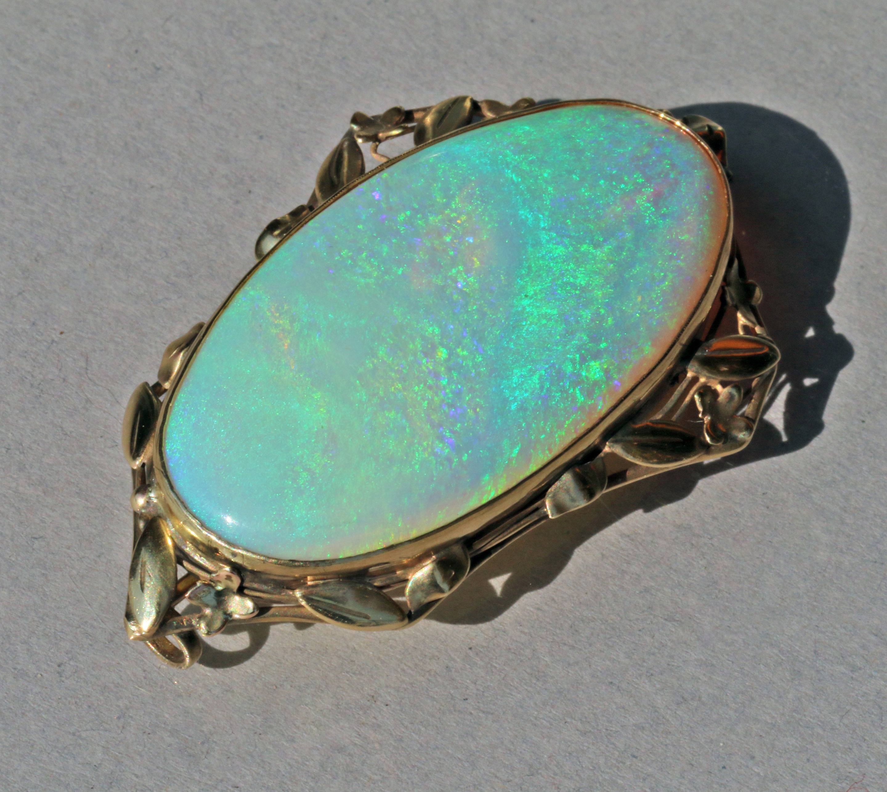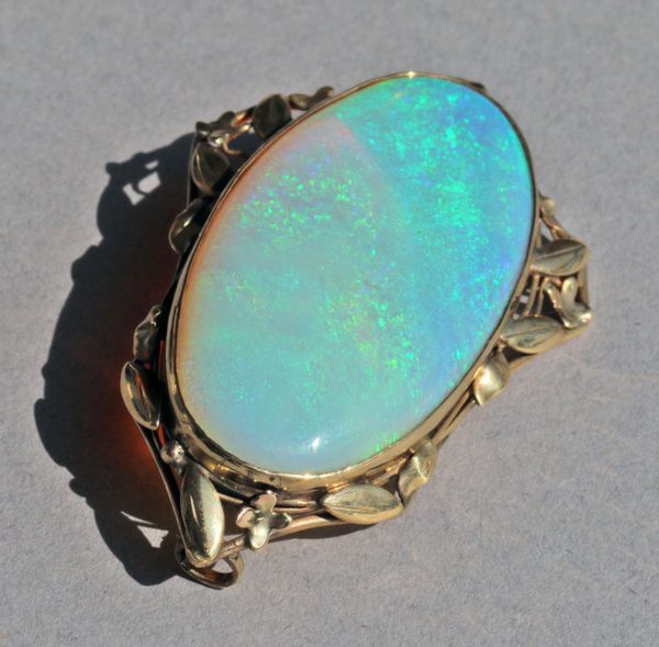 The fabulous precious opal is approximaety 60 carats, mounted in gold.