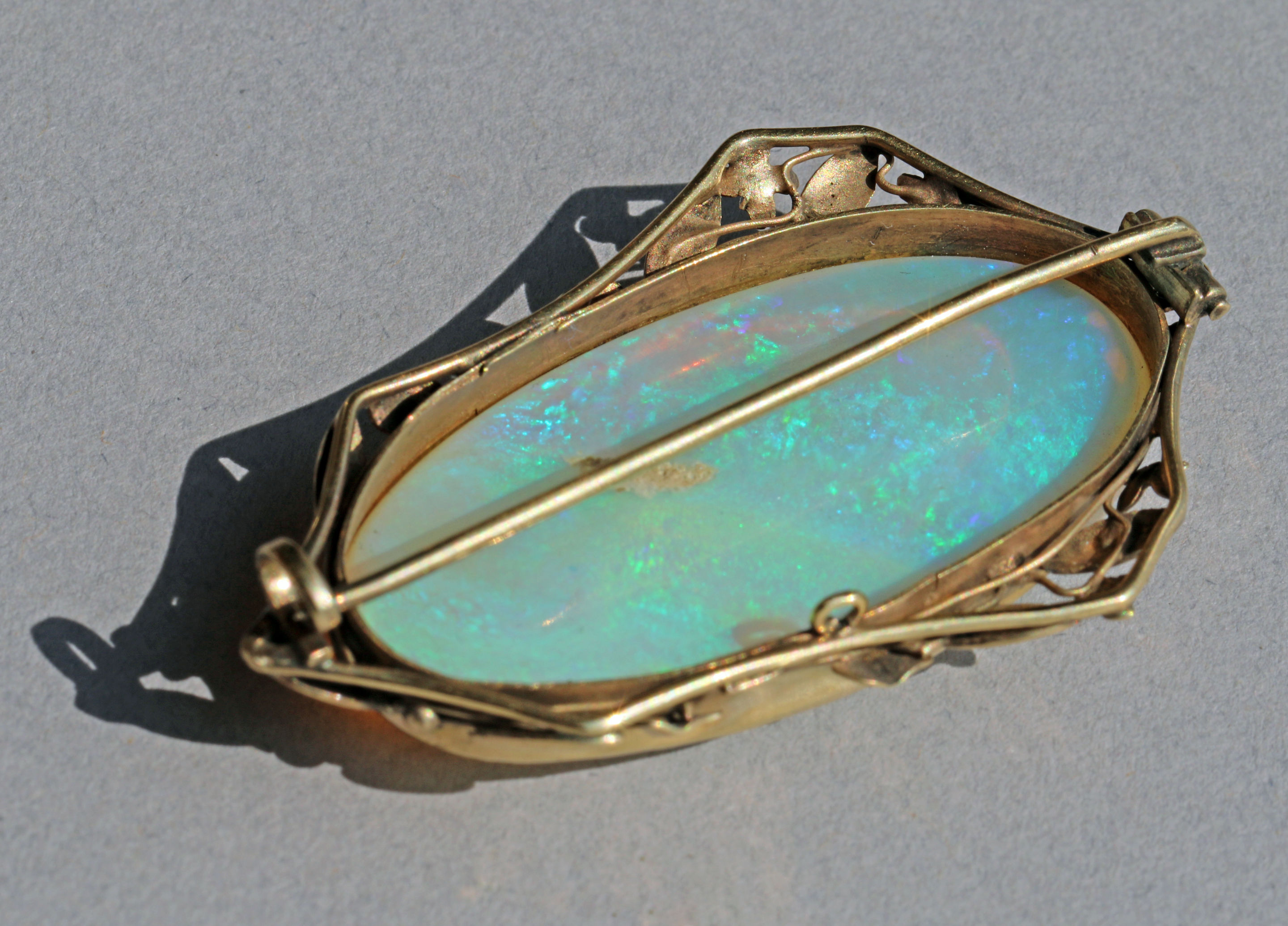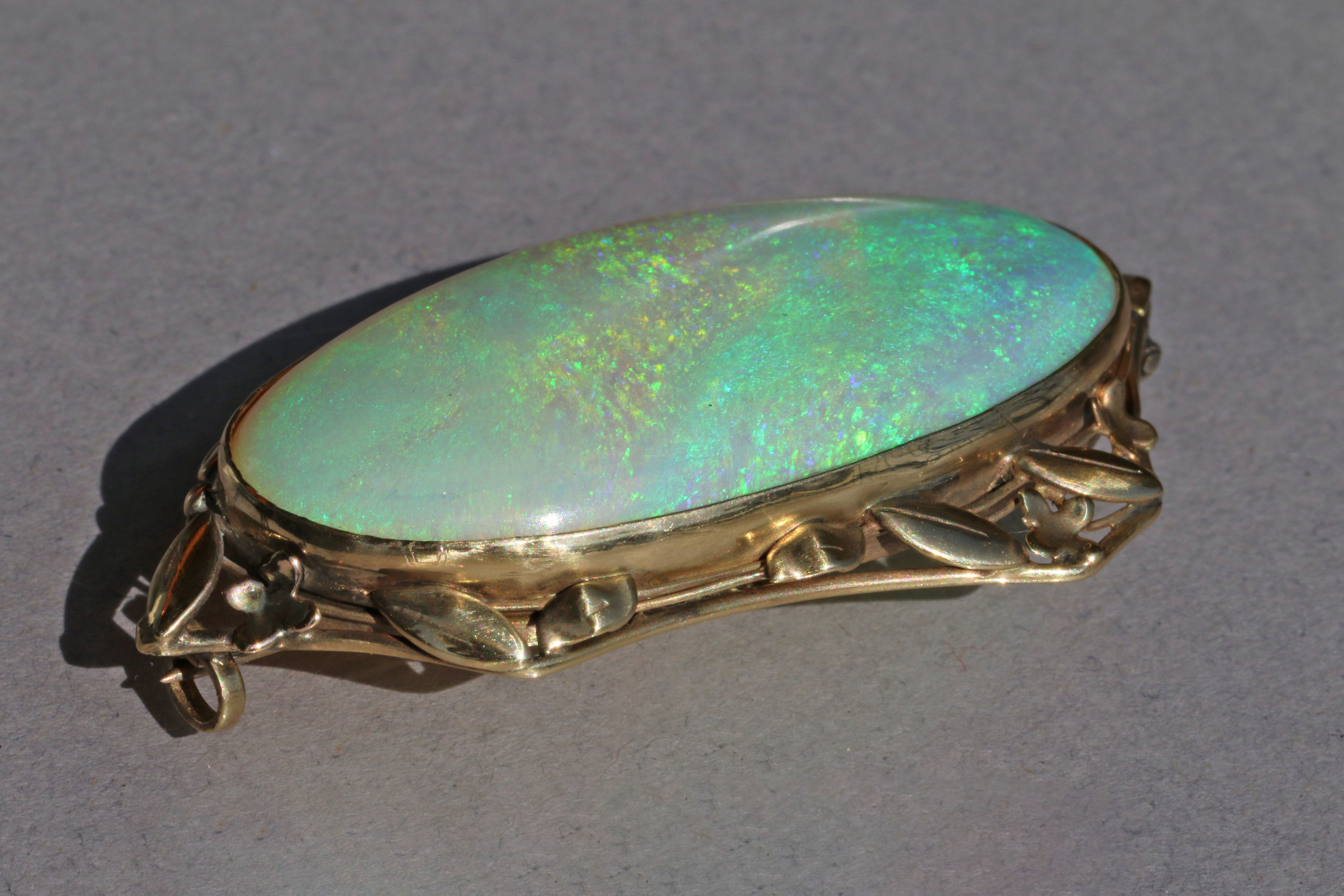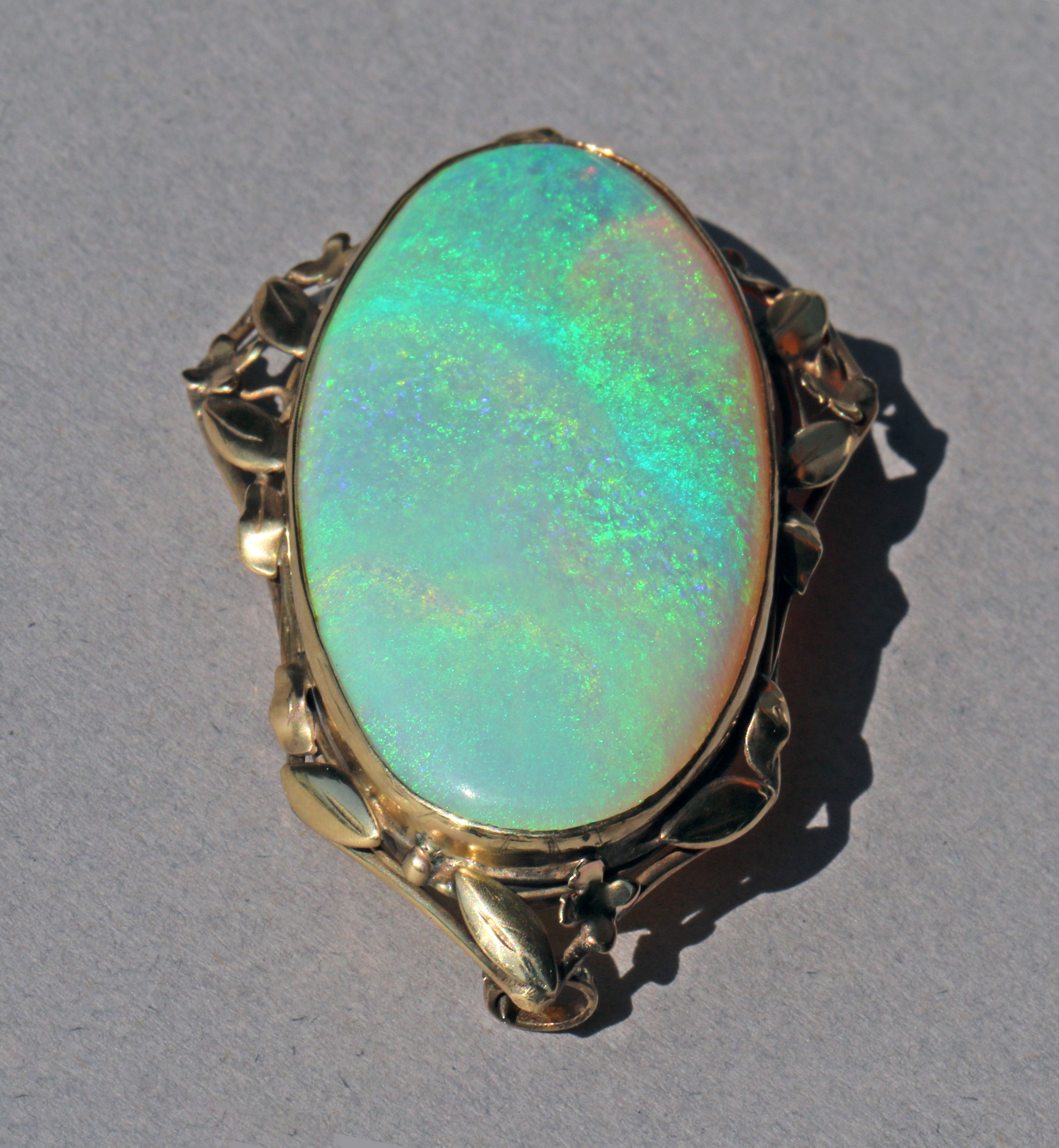The fabulous precious opal is approximaety 60 carats, mounted in gold.