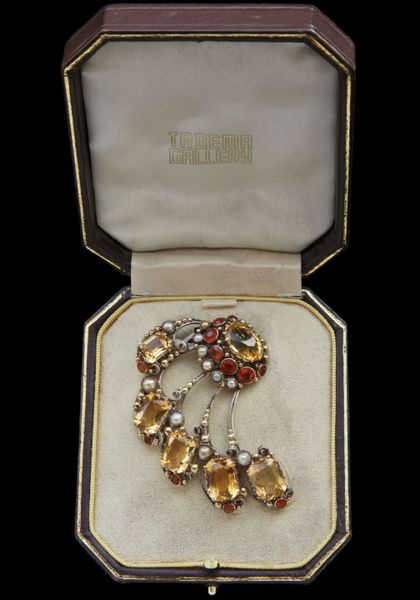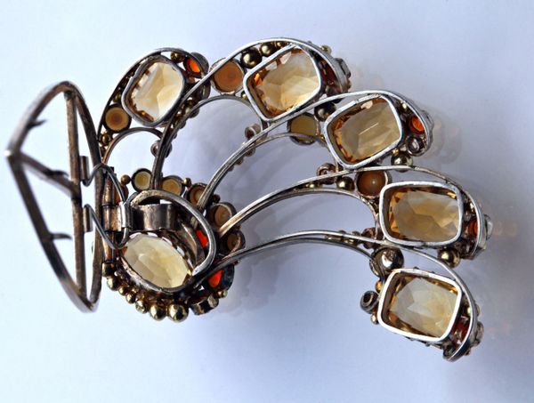 ""Heavenly"" Comet Clip/Brooch. Can be worn either as a dress clip or on a hair band. Sublime colors of fire opals & citrines.