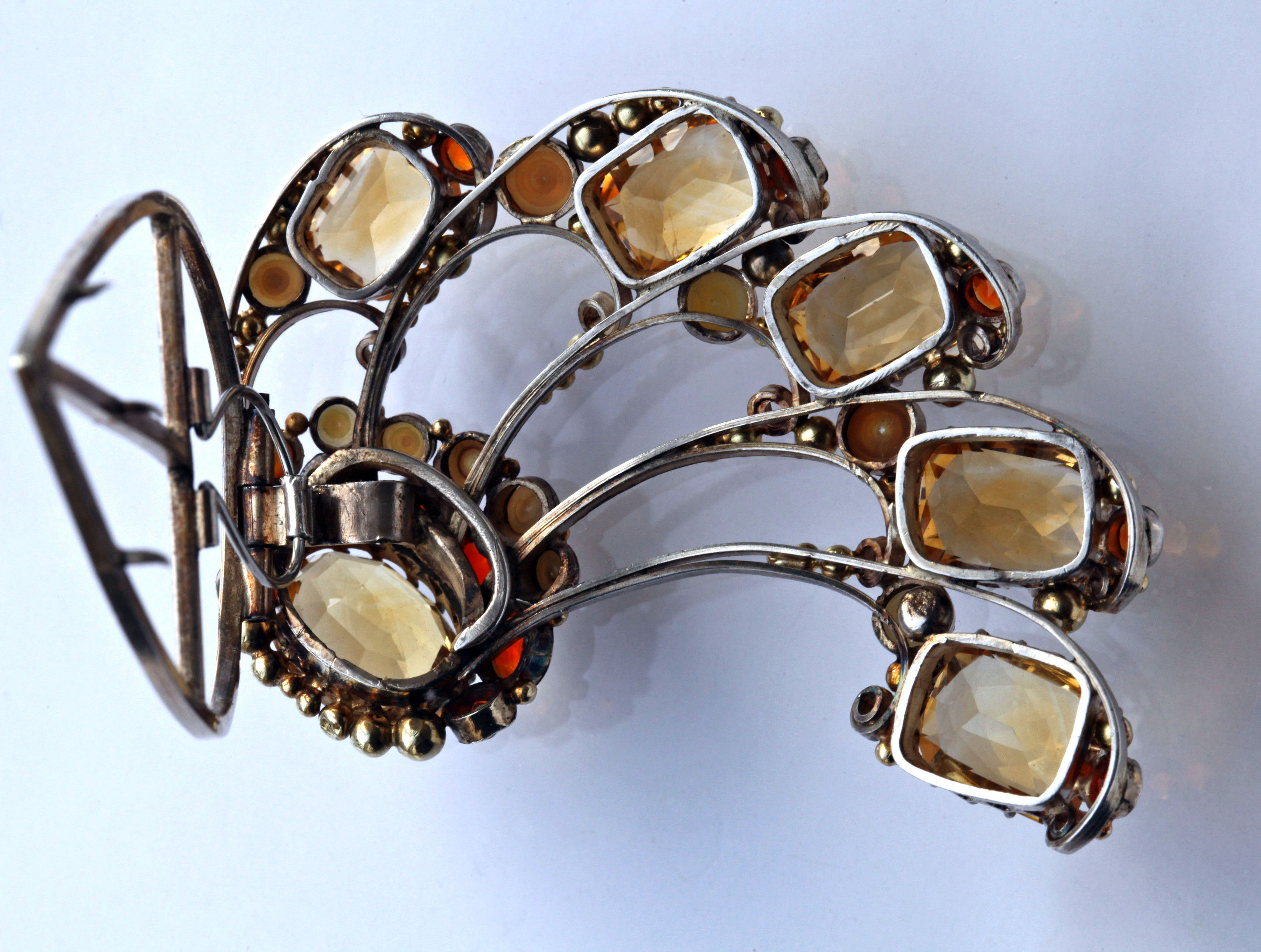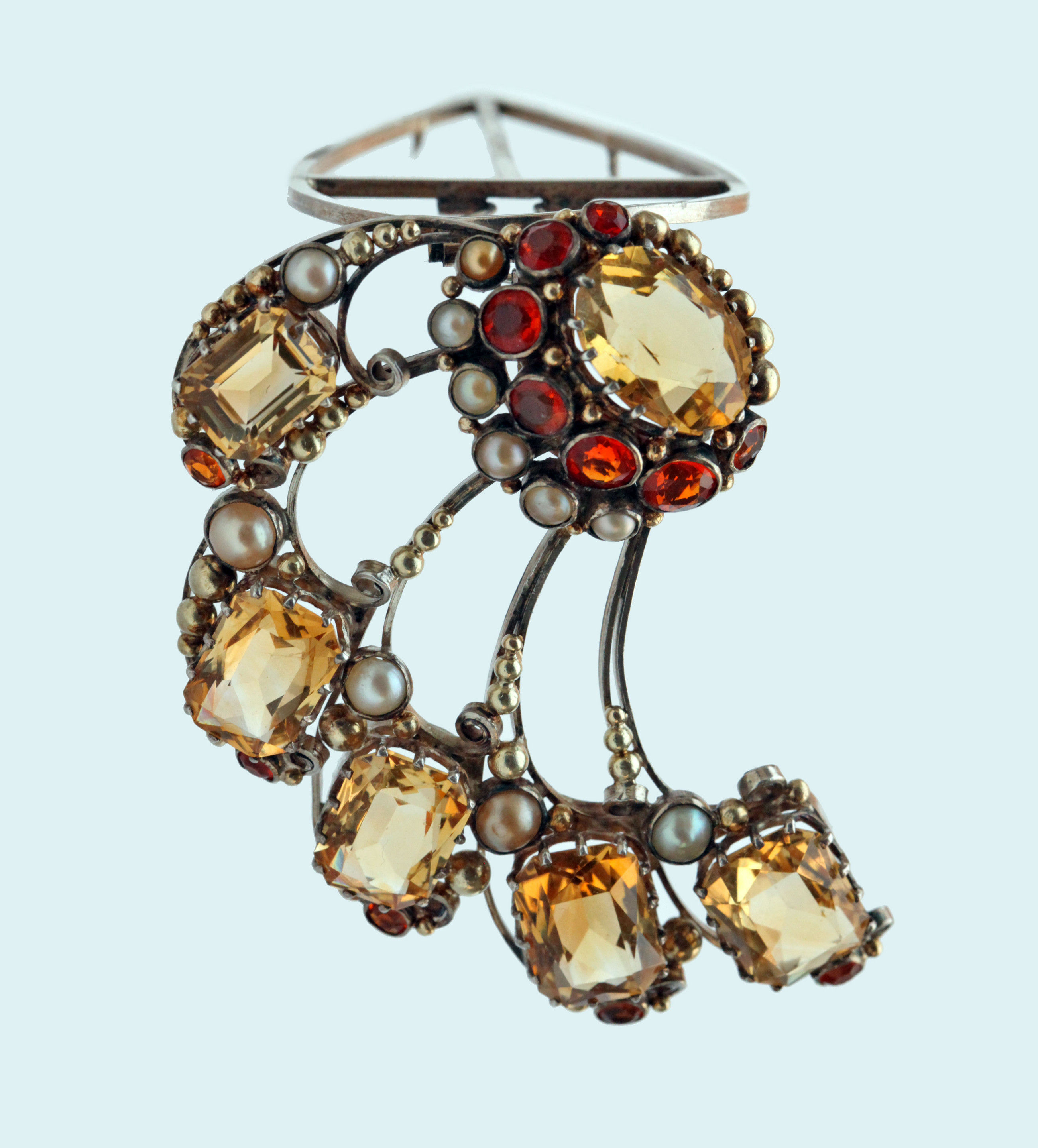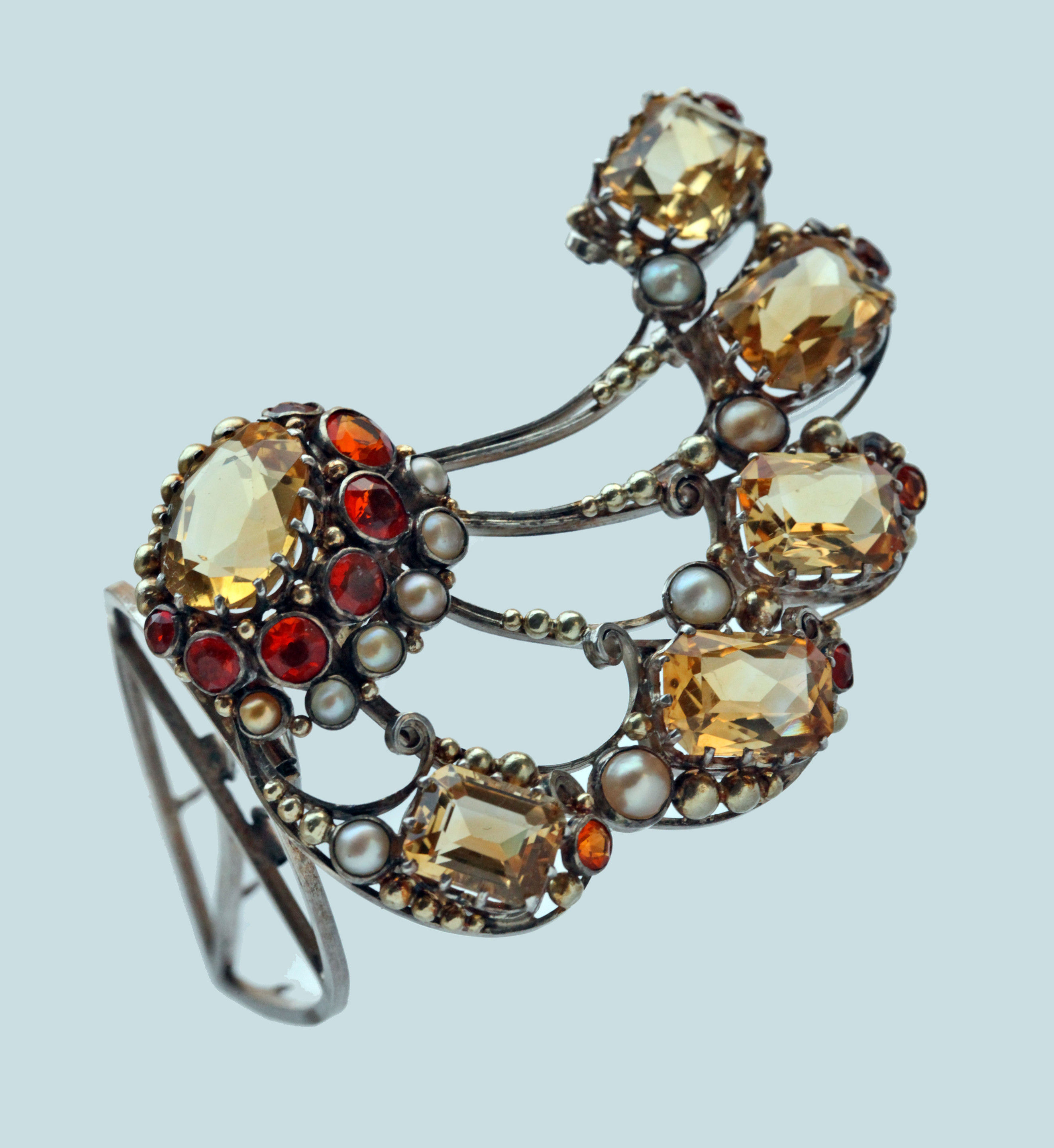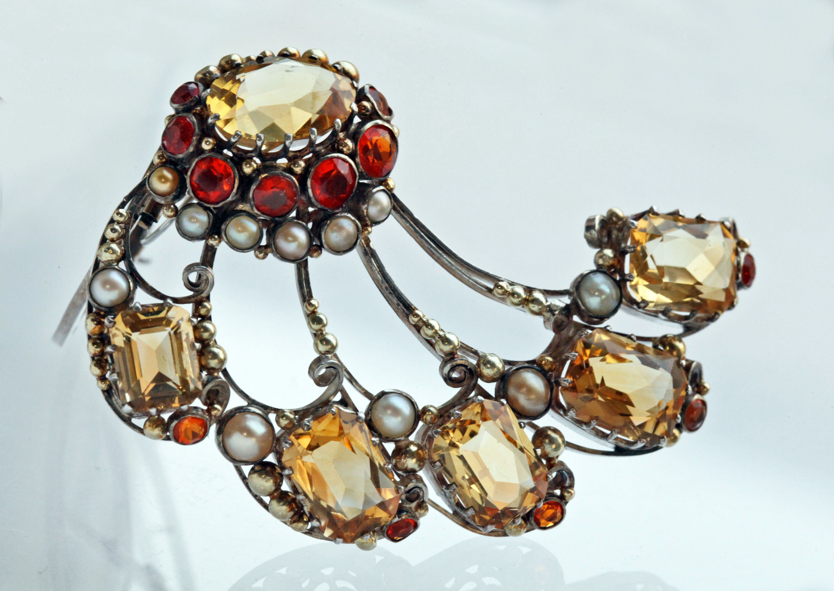 Silver Gold Citrine Fire Opal Pearl