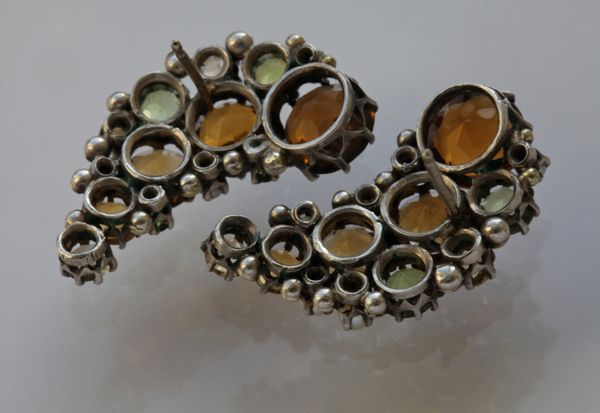 Pretty crescent shaped earrings for pierced ears by Dorrie Nossiter, with graduated citrines.