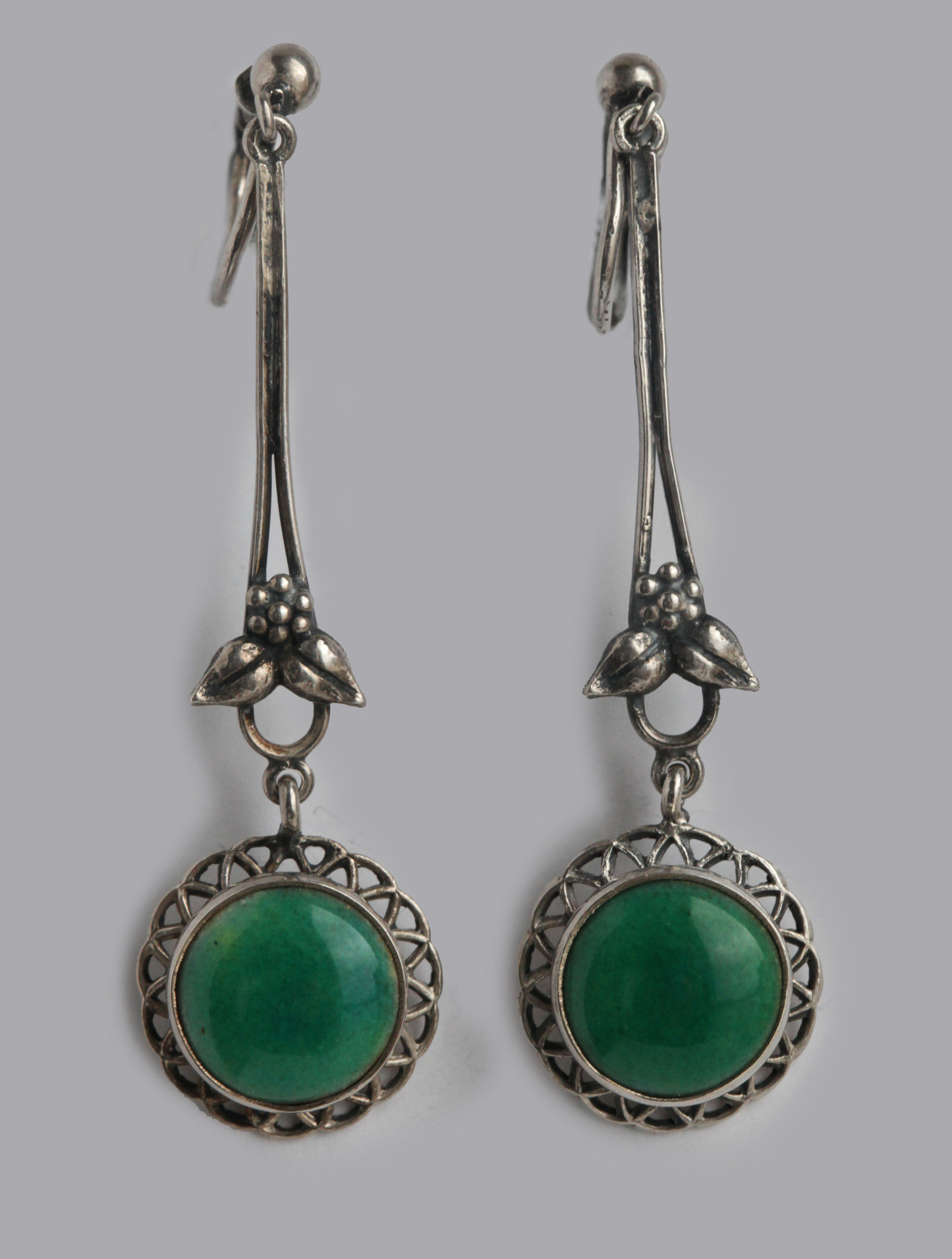 Delicate Arts & Crafts drop earrings by Bernard Instone. Screw fittings which can be altered for pierced ears,