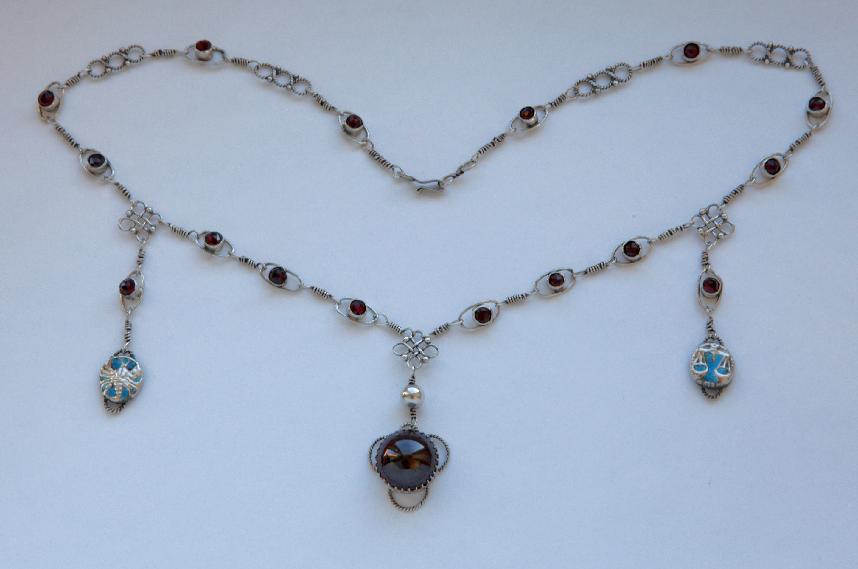Scorpio and Libra are the birth signs of John and Nancy Bonnor and appear together in many of their necklaces including the St Wenefride Necklace that we sold to the Museum of Wales, Archive Ref: 8151.