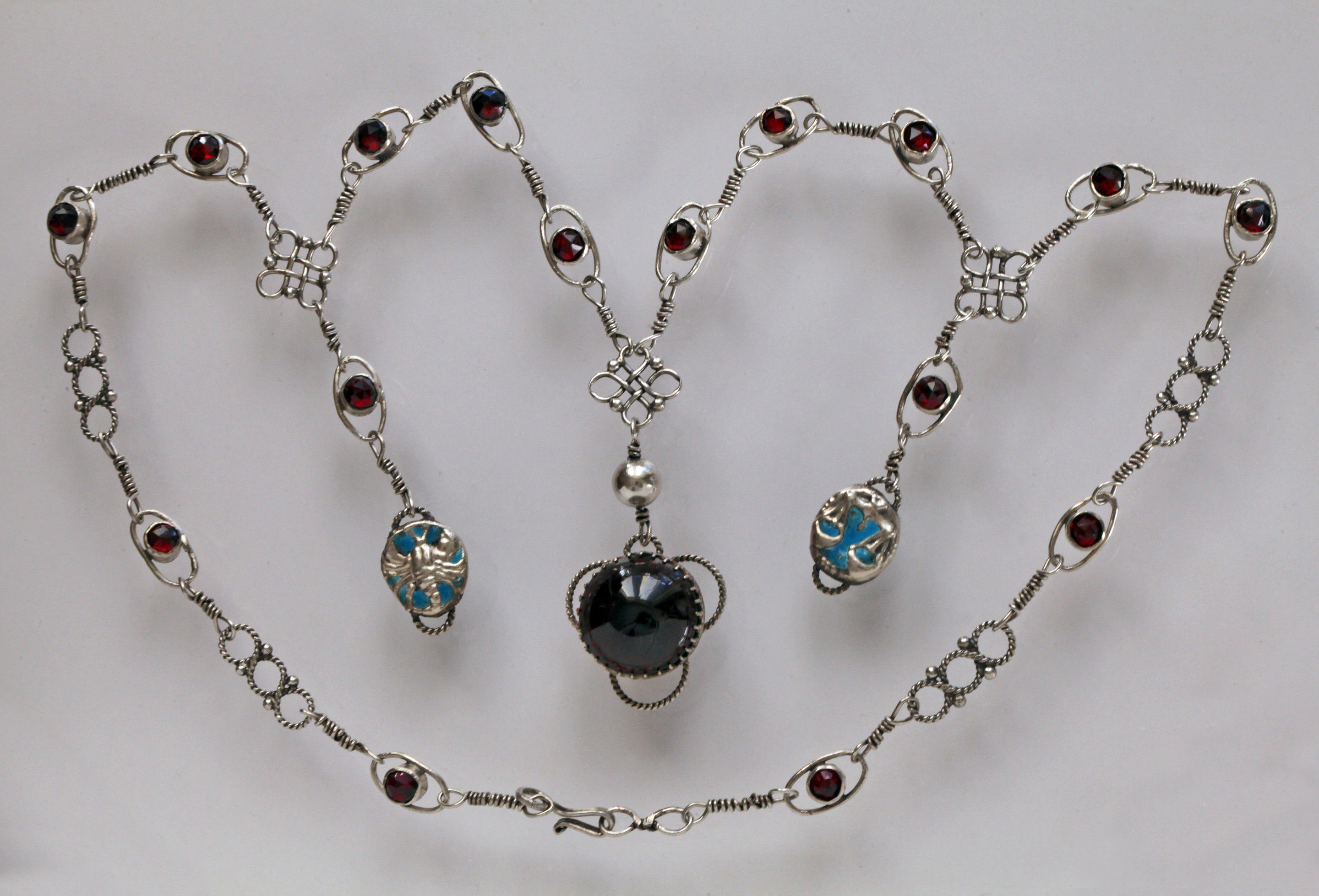 Silver Enamel Garnet