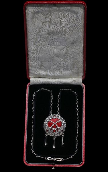 Silver, enamel, garnet