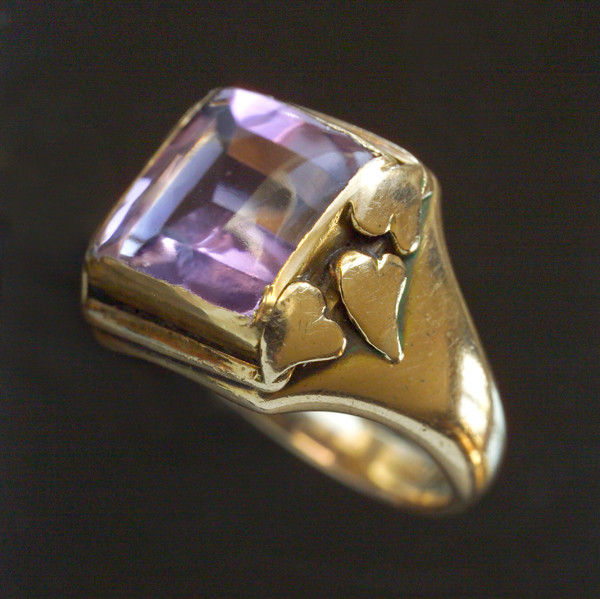 Arts & Crafts Ring with Linked Hearts