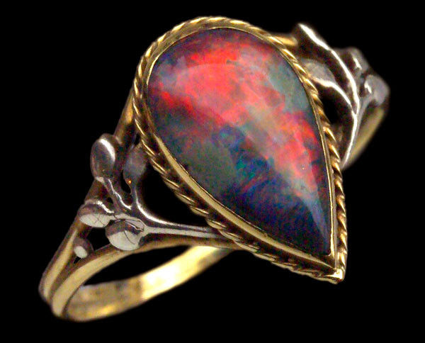 Gold, silver & fine black opal