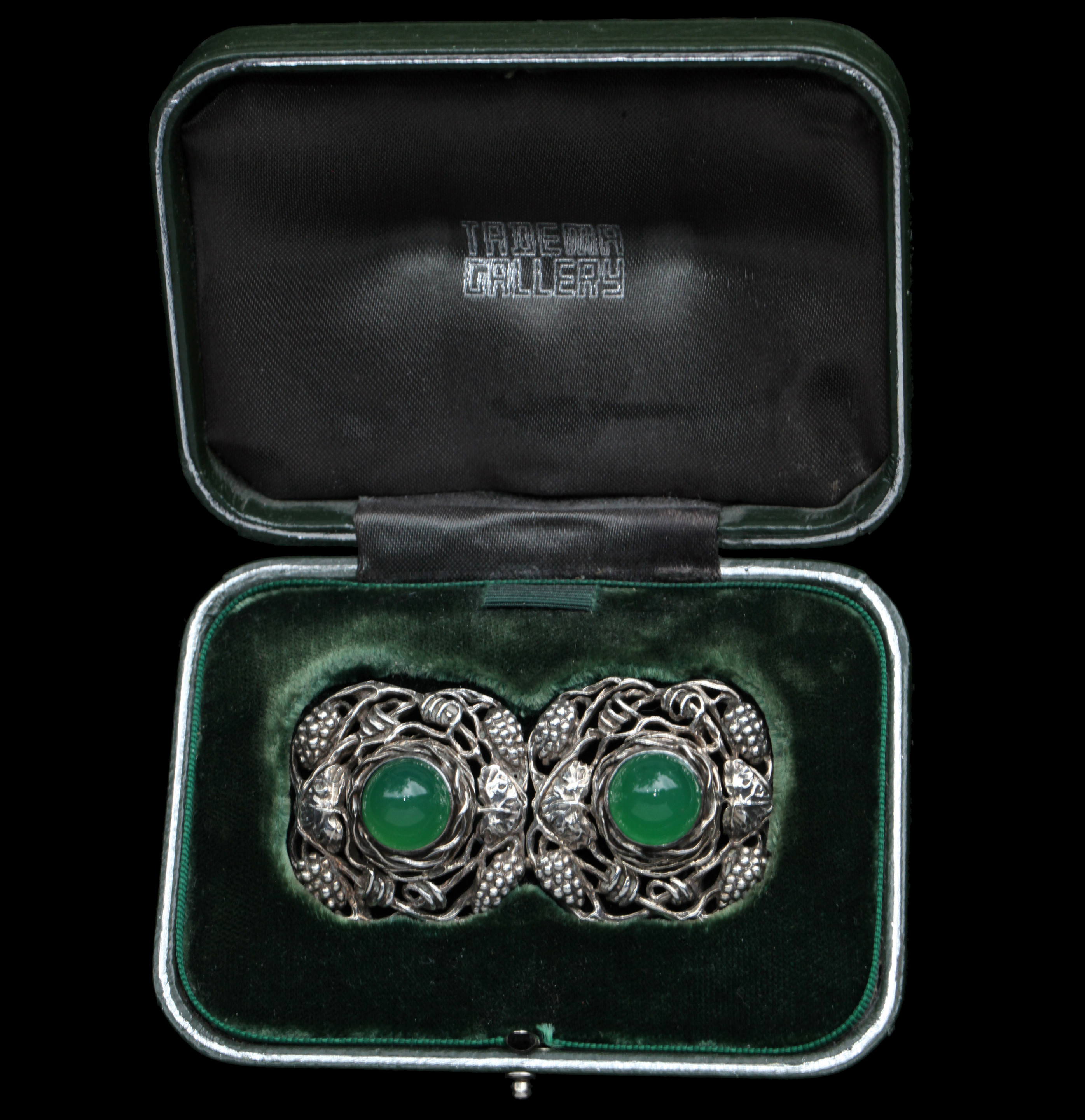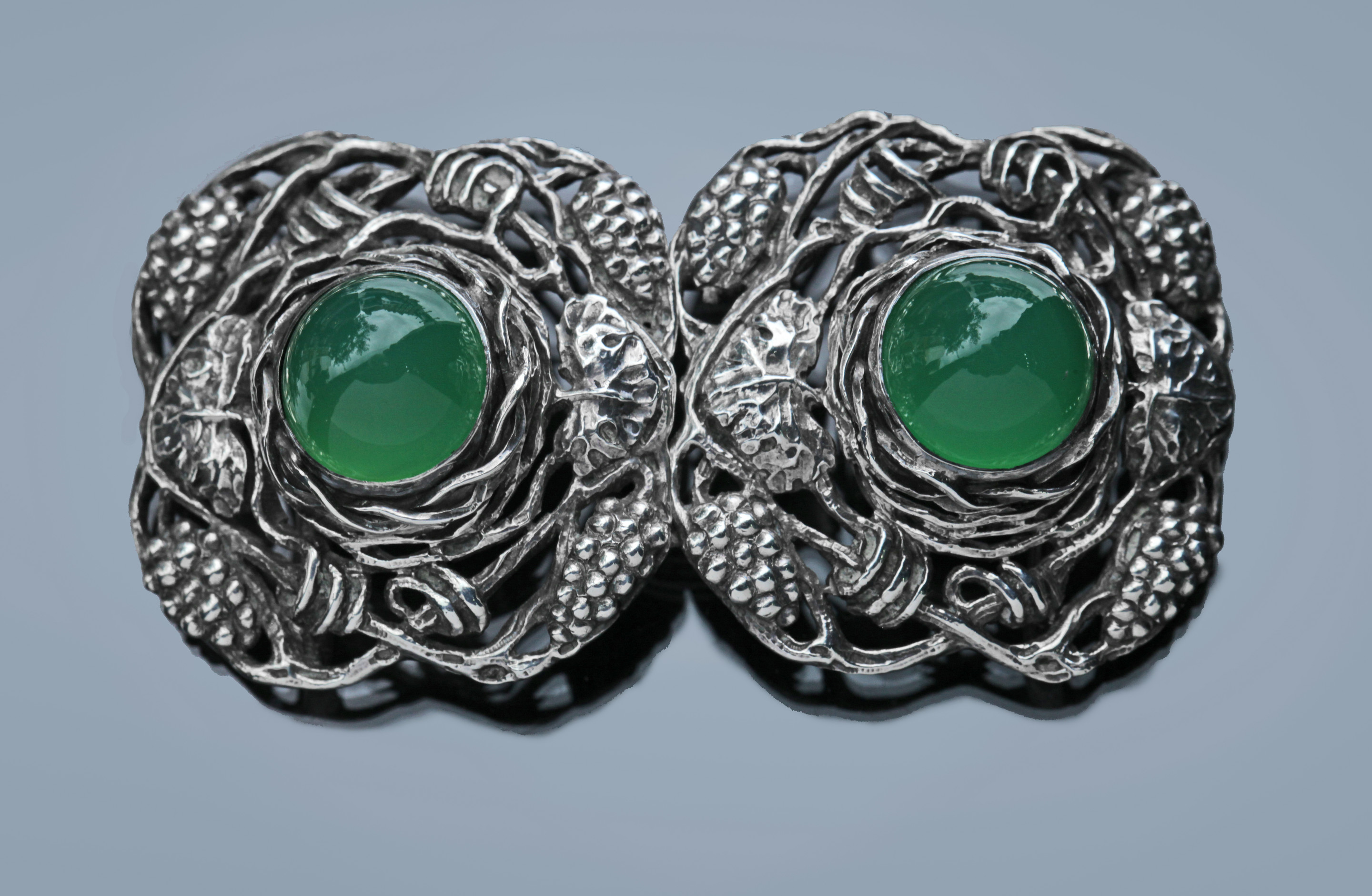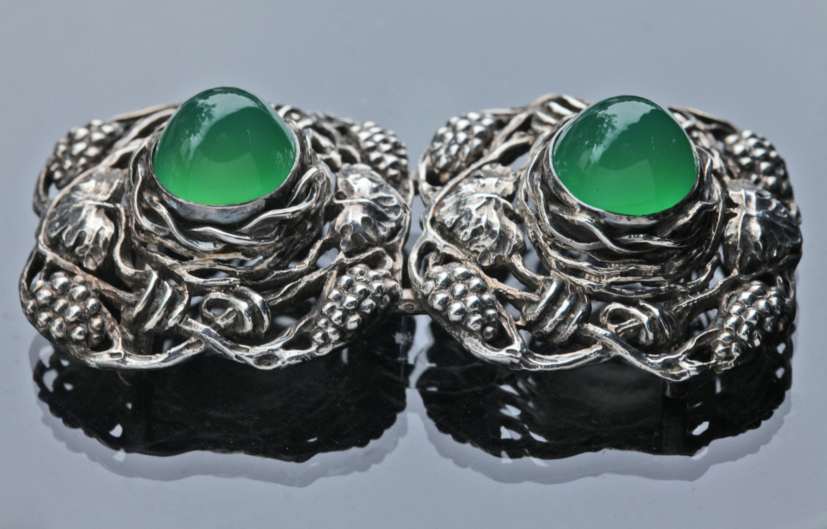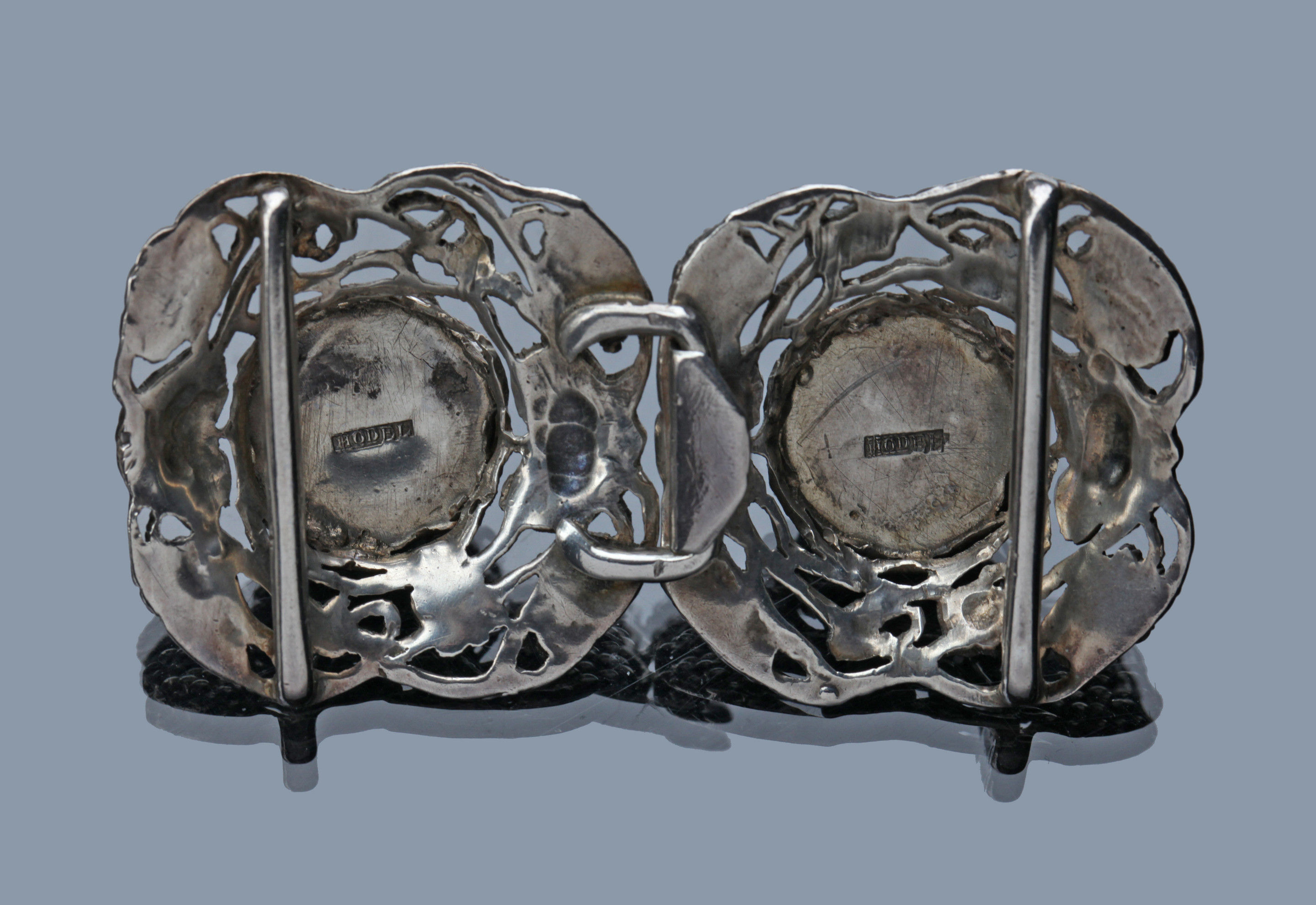 An intricate Arts & Crafts waist clasp by Joseph Hodel in the form of a grape vine.