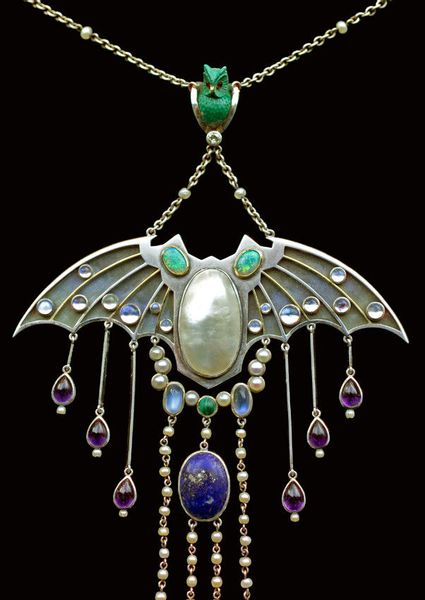 Silver, gold, opal, enamel, moonstone, pearl, amethyst, lapis, turquoise, ruby diamond
