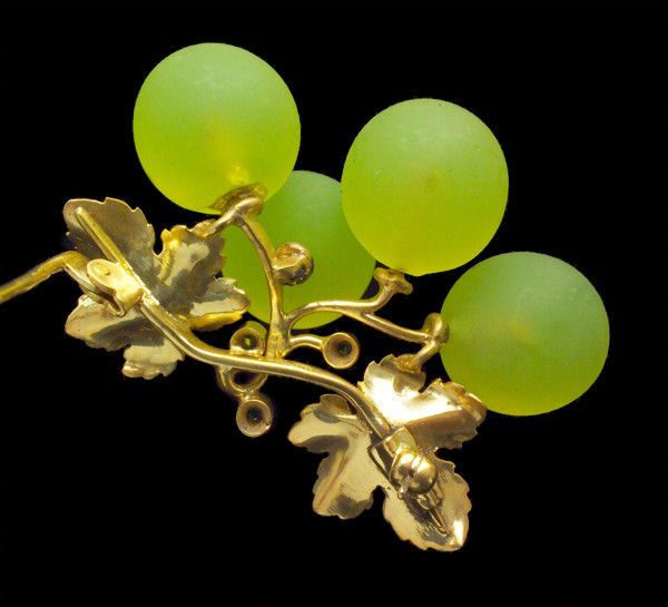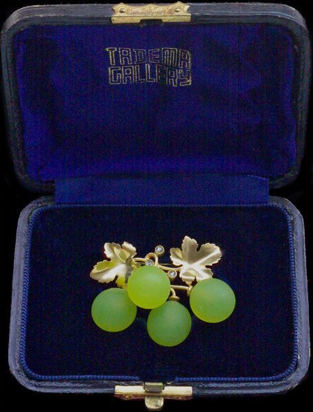 A gold & diamond frosted glass, Grape Brooch by the Parisienne jewelers Maison Fonsèque and Olive