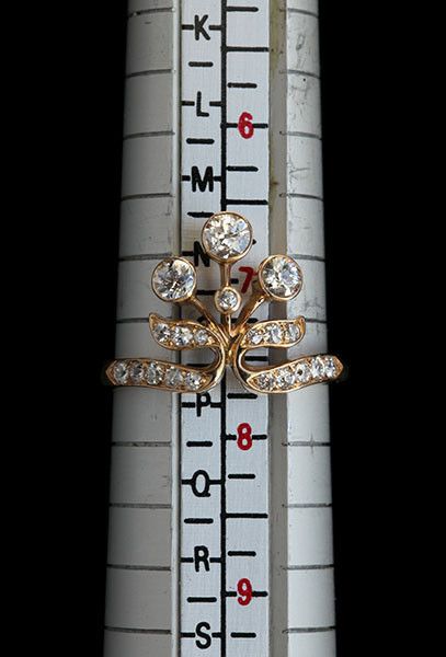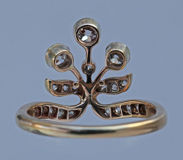 European cut diamonds: 3 x 0.15 = 0.45 cts approx.   17 x 0.02 cts = 0.35cts approx
