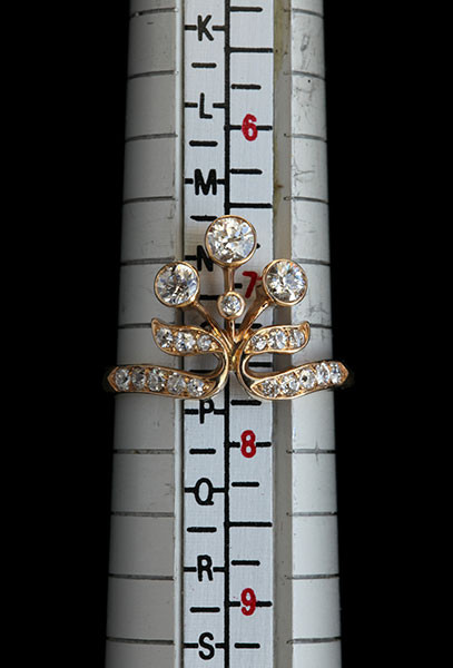 European cut diamonds: 3 x 0.15 = 0.45 cts approx. 17 x 0.02 cts = 0.35cts approx
