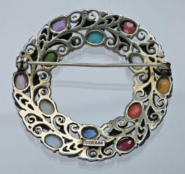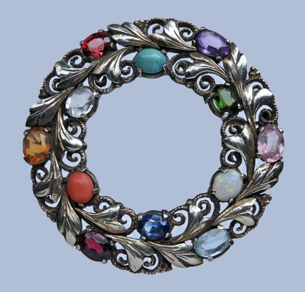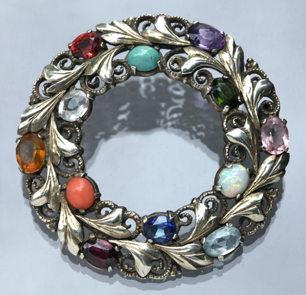 Garden of gems brooch, set with, opal, coral, garnet, sapphire, tourmaline, turquoise,.citrine & aquamarine