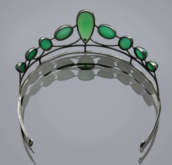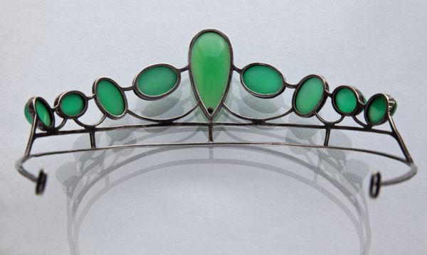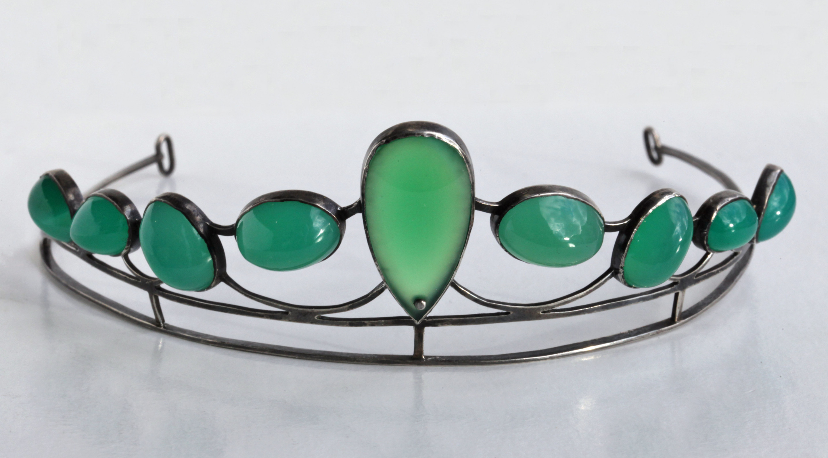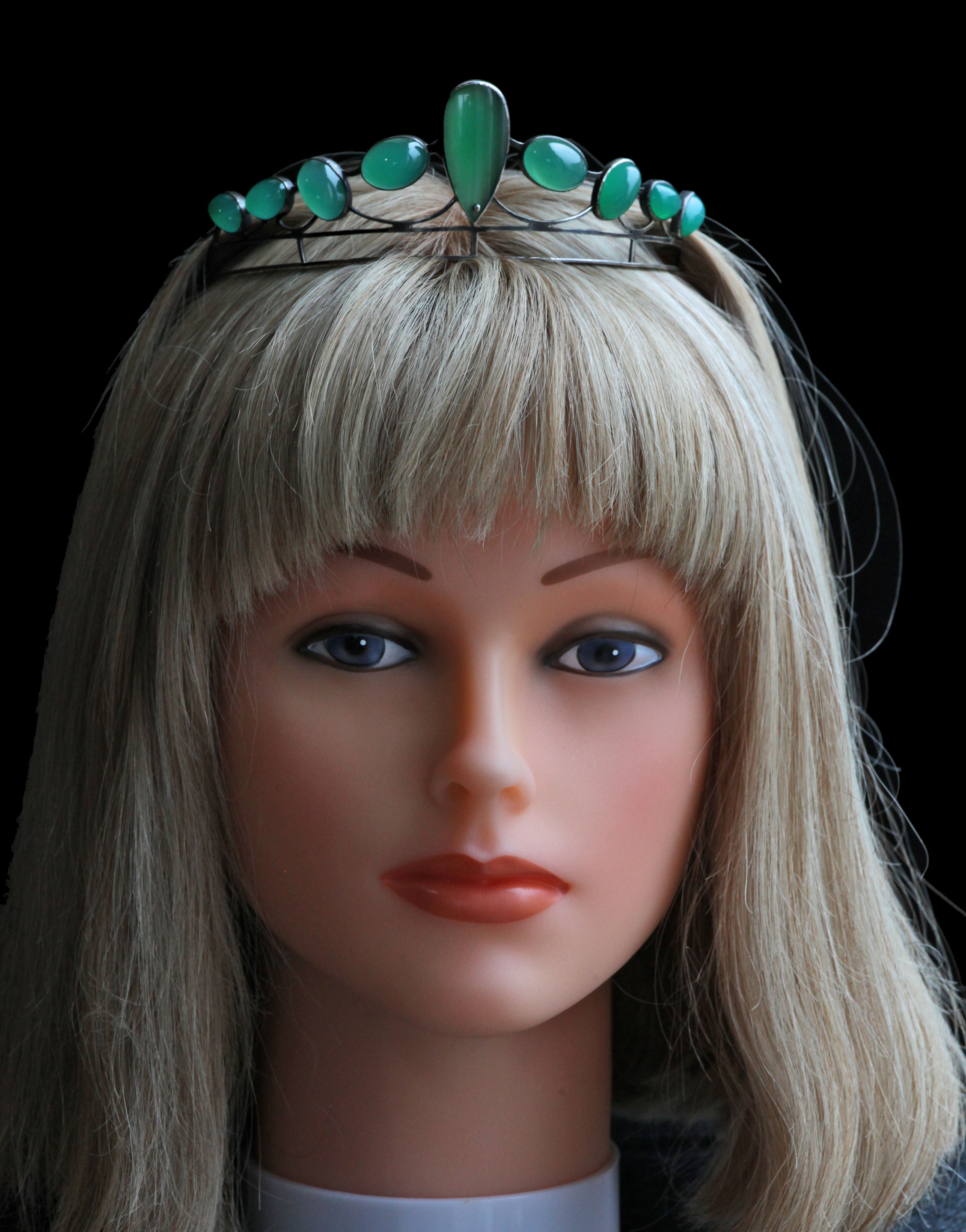 This pretty Tiara with its leaf green colour agate cabachons would look beautiful with the green in the bridal bouquet.