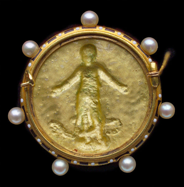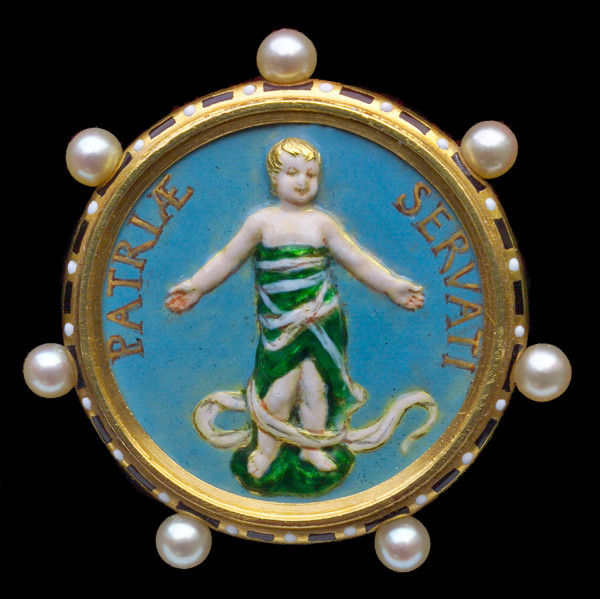 The enamel panel is based on the 'Ospedale degli Innocenti' Luca della Robbia, the 15th Century Foundling Hospital, Florence