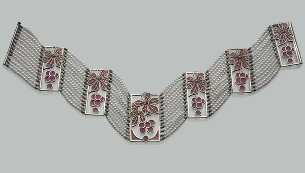 cf. Fritz Falk, Jugendstil-Schmuck // Art Nouveau Jewellery from Pforzheim, 2009, p.193 cat no KH 26 for same collier without pearls.