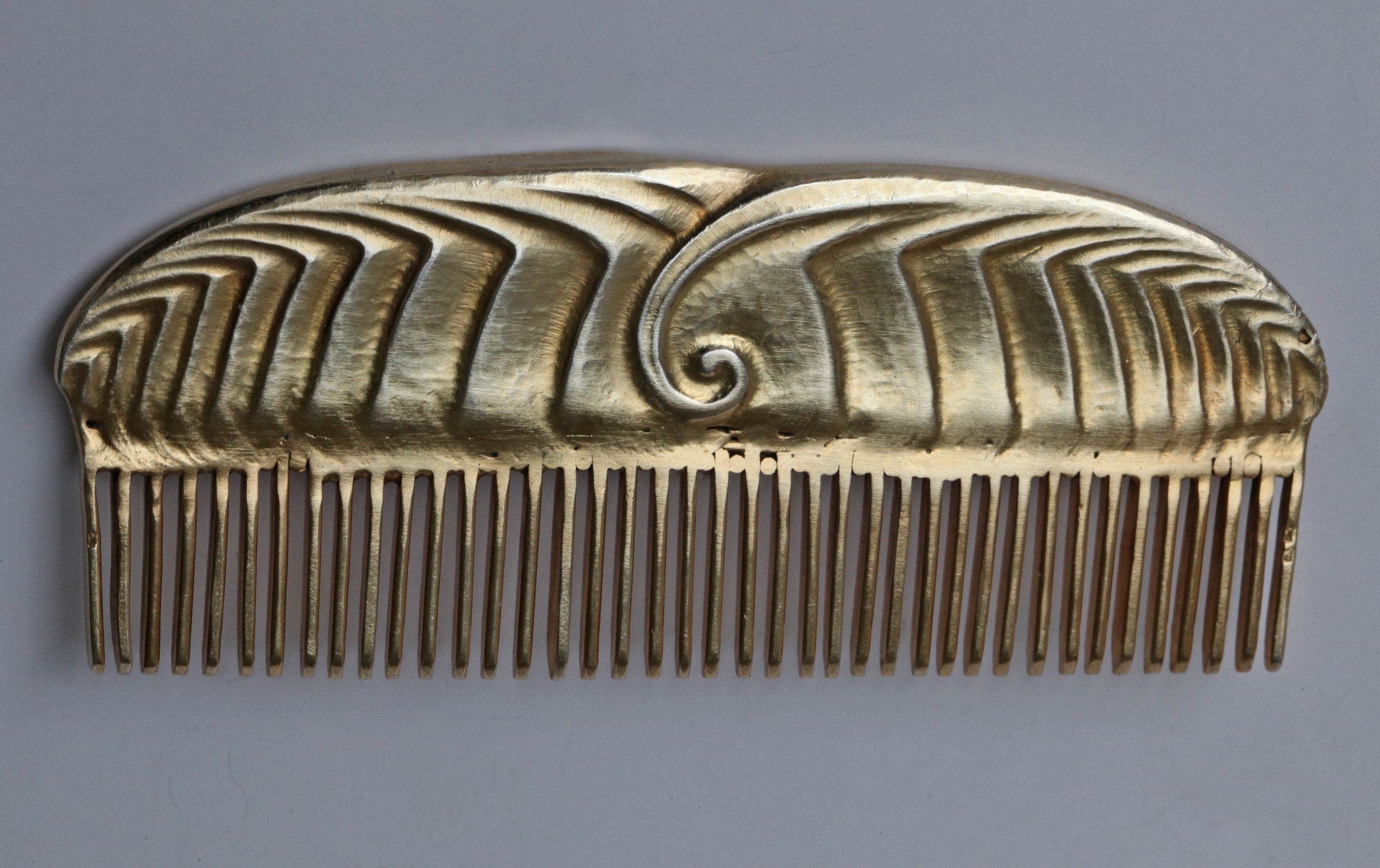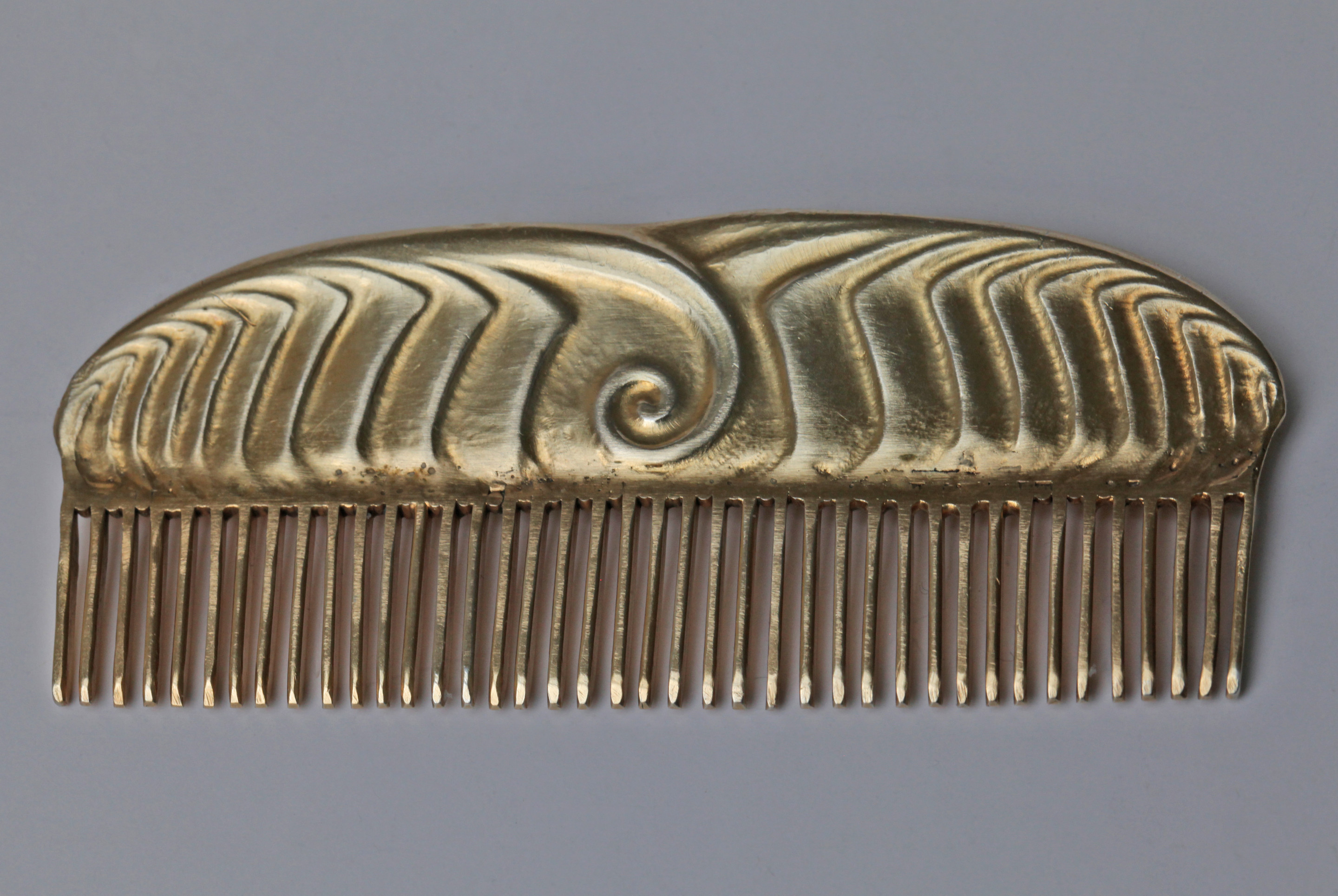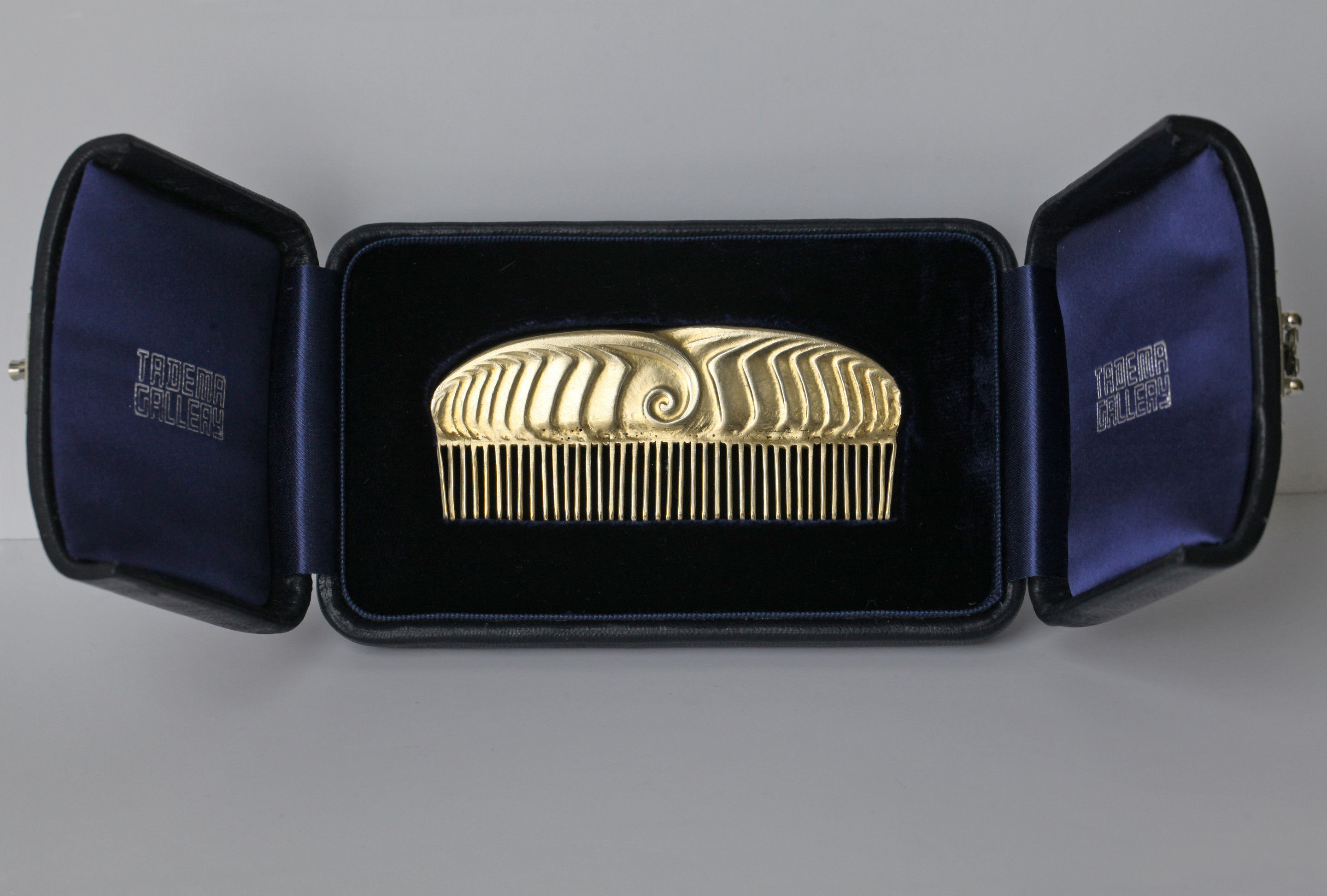 An exceptional archetypal Art Nouveau comb in gilded silver.