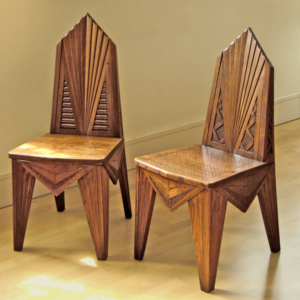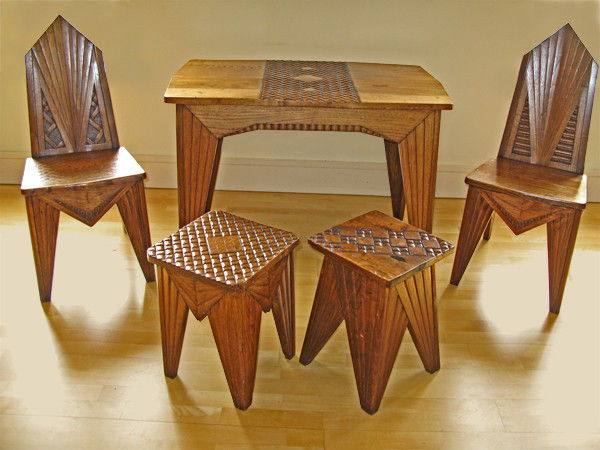 Important Cubist Table & Chairs in Carved Wood Designed for the interior of the Polish Pavilion of the 1925 International Exhibition of Decorative Arts in Paris for which Mieczyslaw Kotarbinski won the Grand Prix