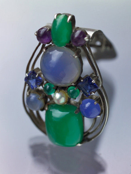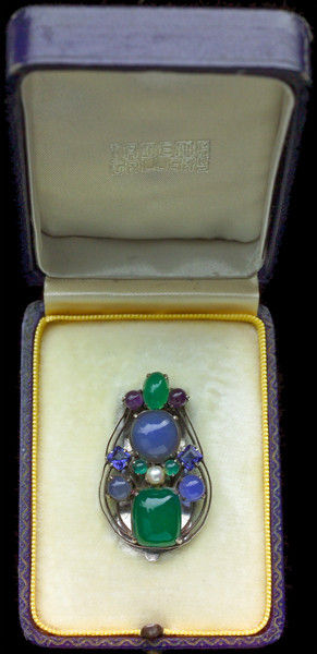 The Art Jeweller Edith Linnell originally intended to be a portrait painter. She successfully experimented with jewellery making in the early 20th century; her works received a medal and were purchased by the Board of Education for permanent exhibition at the Victoria and Albert Museum. Her jewellery was naturalistic in design based on her years of study as an artist drawing from nature. Her travels worldwide enabled her to source gemstones for her designs. Originally based in the Burlington Arcade Edith Linnell later established premises at 188, Sloane Street; she also exhibited at the Arlington Gallery, 22, Old Bond Street and had showcases in Harrods and on RMS Queen Mary. The advent of the Second World War saw the end of her business when her Sloane Street premises were bombed during the blitz. The Studio Year Book of Decorative Art 1909, p.147 lists: 'LINNELL, Mrs. Edith M., Malvern-bury, Oakland Road, Moseley, Birmingham. 'Mrs. Linnell is a designer of and worker in jewelry, gold and silver. She exhibited at the last exhibition of the Arts & Crafts Society in London, and at St. Louis, the Baillie Gallery, London, The Albert Hall, London, and the Walker Art Gallery, Liverpool'