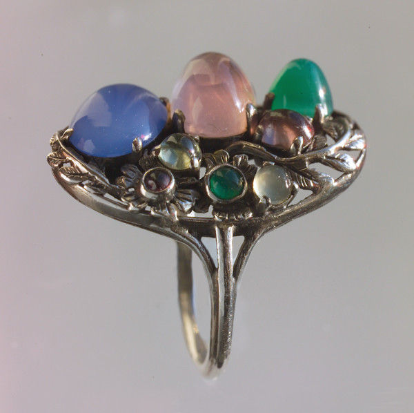 The Art Jeweller Edith Linnell originally intended to be a portrait painter. She successfully experimented with jewellery making in the early 20th century; her works received a medal and were purchased by the Board of Education for permanent exhibition at the Victoria and Albert Museum. Her jewellery was naturalistic in design based on her years of study as an artist drawing from nature. Her travels worldwide enabled her to source gemstones for her designs. Originally based in the Burlington Arcade Edith Linnell later established premises at 188, Sloane Street; she also exhibited at the Arlington Gallery, 22, Old Bond Street and had showcases in Harrods and on RMS Queen Mary. The advent of the Second World War saw the end of her business when her Sloane Street premises were bombed during the blitz. The Studio Year Book of Decorative Art 1909, p.147 lists: 'LINNELL, Mrs. Edith M., Malvern-bury, Oakland Road, Moseley, Birmingham. 'Mrs. Linnell is a designer of and worker in jewelry, gold and silver. She exhibited at the last exhibition of the Arts & Crafts Society in London, and at St. Louis, the Baillie Gallery, London, The Albert Hall, London, and the Walker Art Gallery, Liverpool'