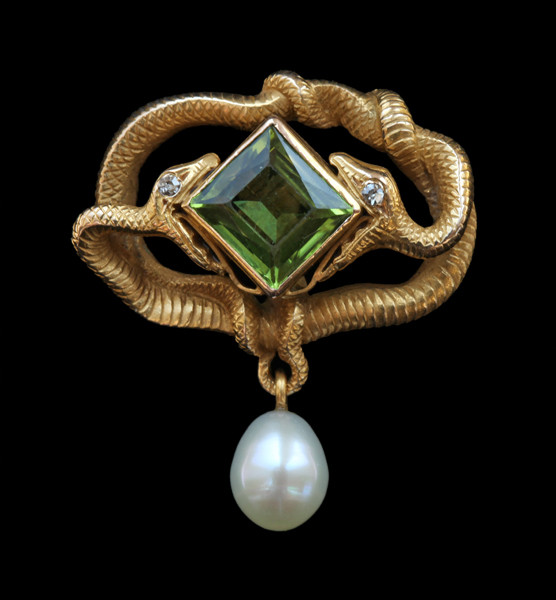Gold, peridot, diamonds, pearl