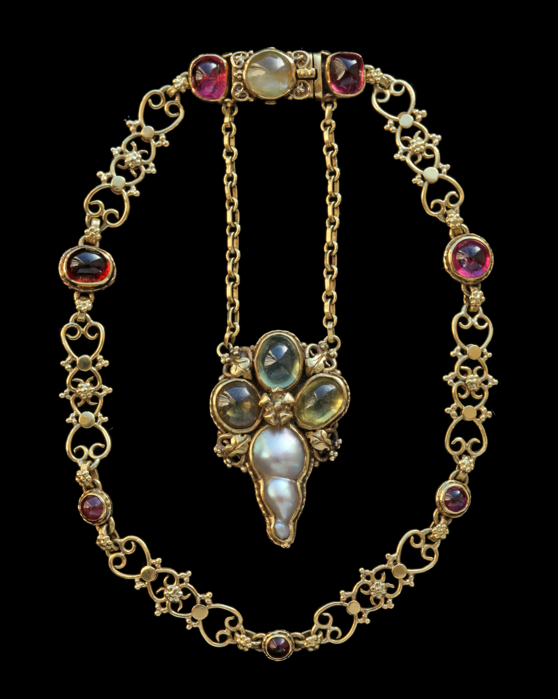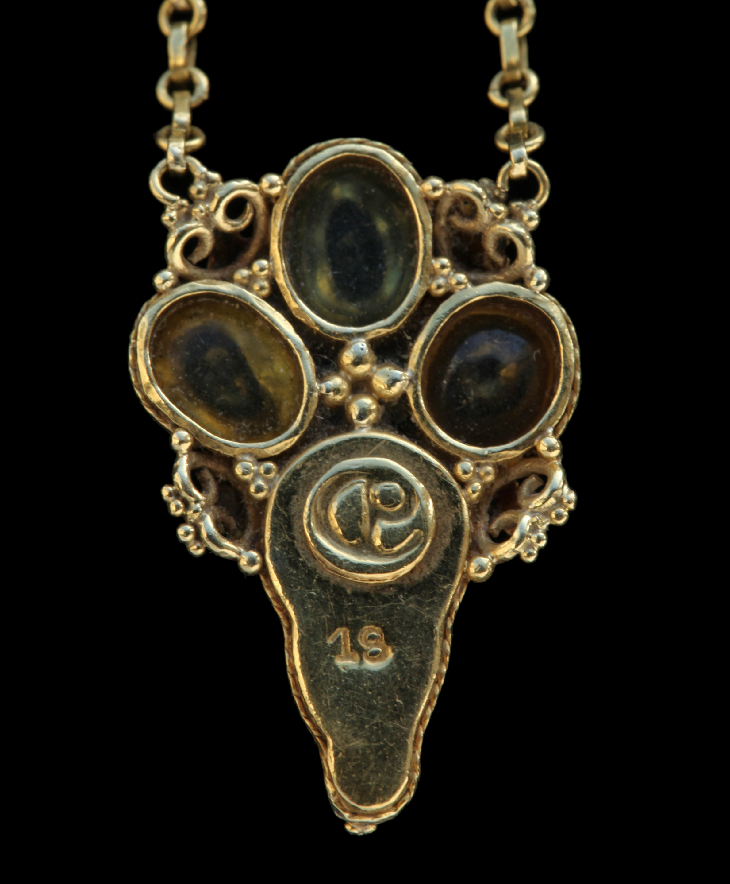 Gold, Chrysoberyl Cat's Eye, Ruby & Pearl