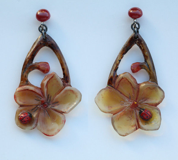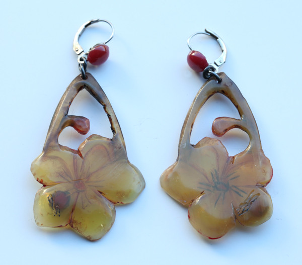 Pierced ear fittings Engraved & painted horn cf. Bijoux et Reliures-Artistes du Xxe Siecle La Bibliotheque des Arts-Paris 1992, p. 30, 31 & 32