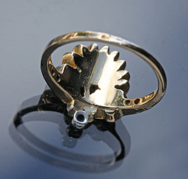 Complimented with five rose cut diamonds