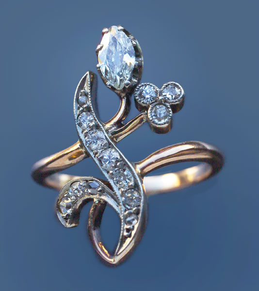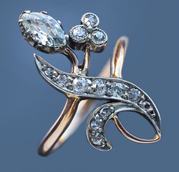 14 European & rose cut diamonds 0.30 cts approx featuring a marquise diamond 0.50 cts approx