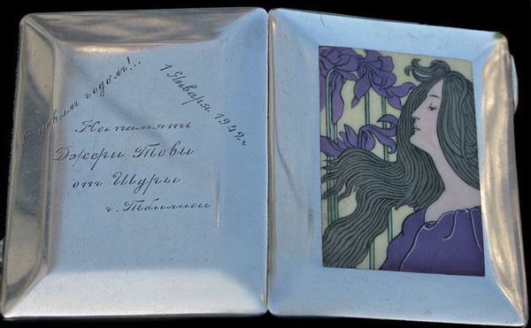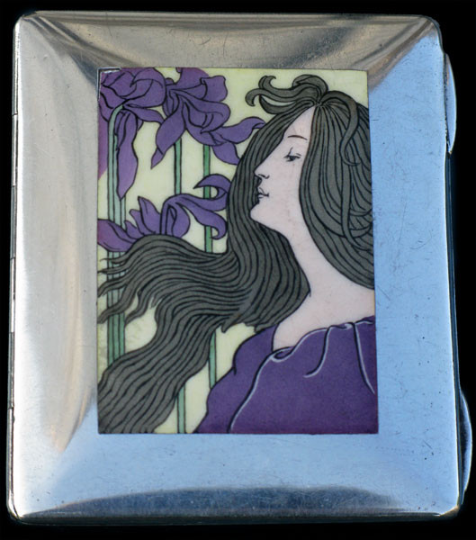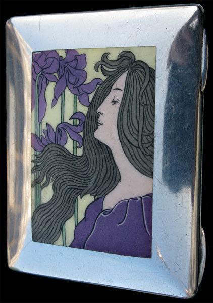 A Jugendstil silver & enamel Cigarette Case designed by Auchentaller.