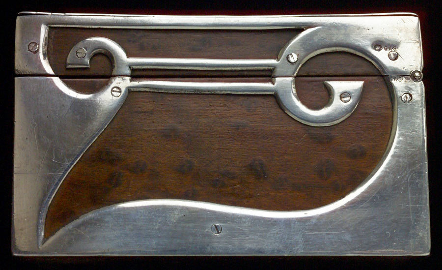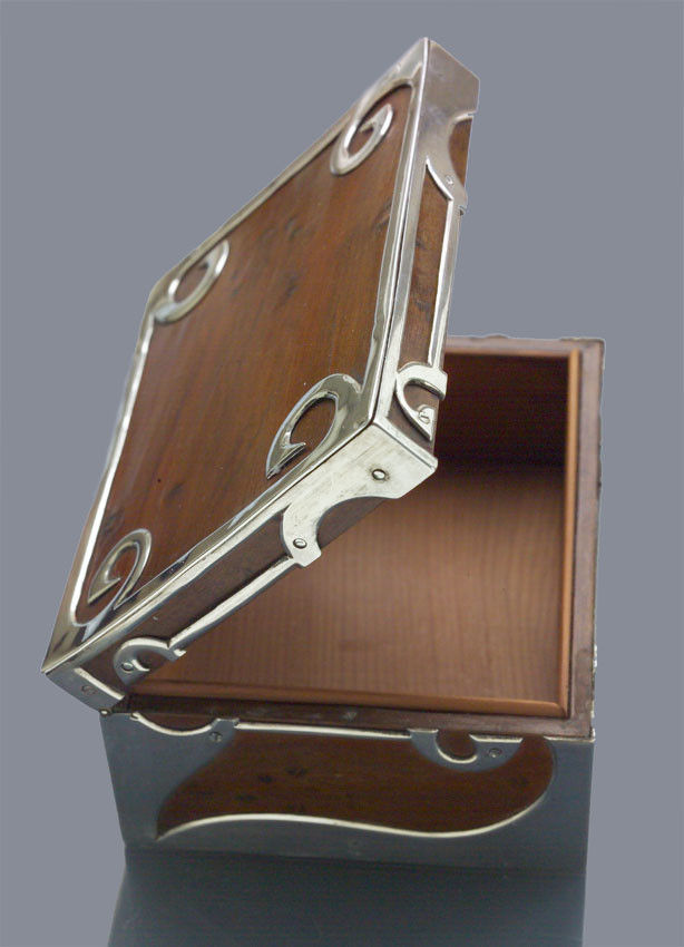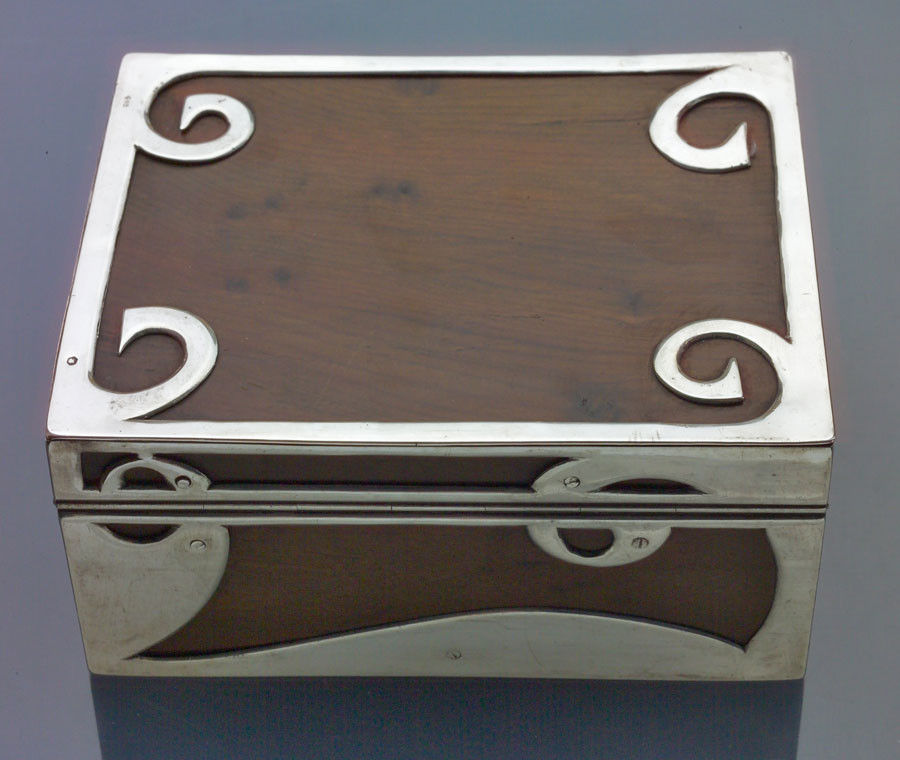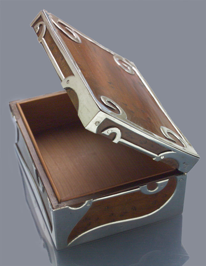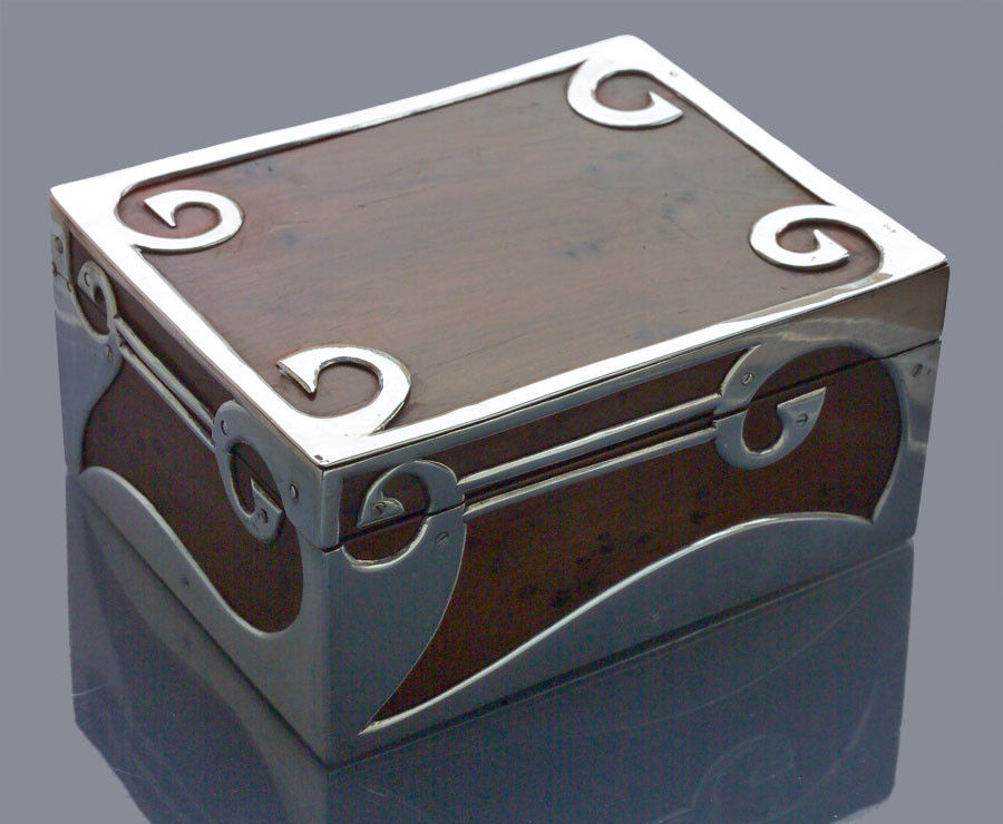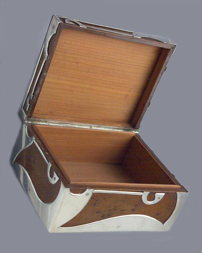 A beautiful Vienna Secession silver & wooden box designed by J.M.Auchentaller, executed by Georg Adam Scheid.