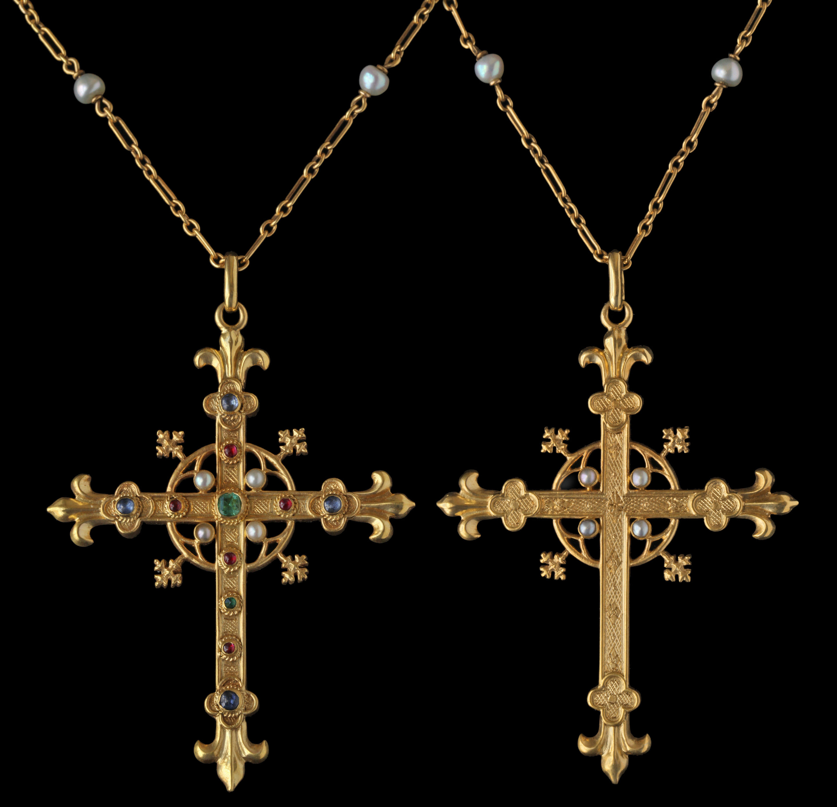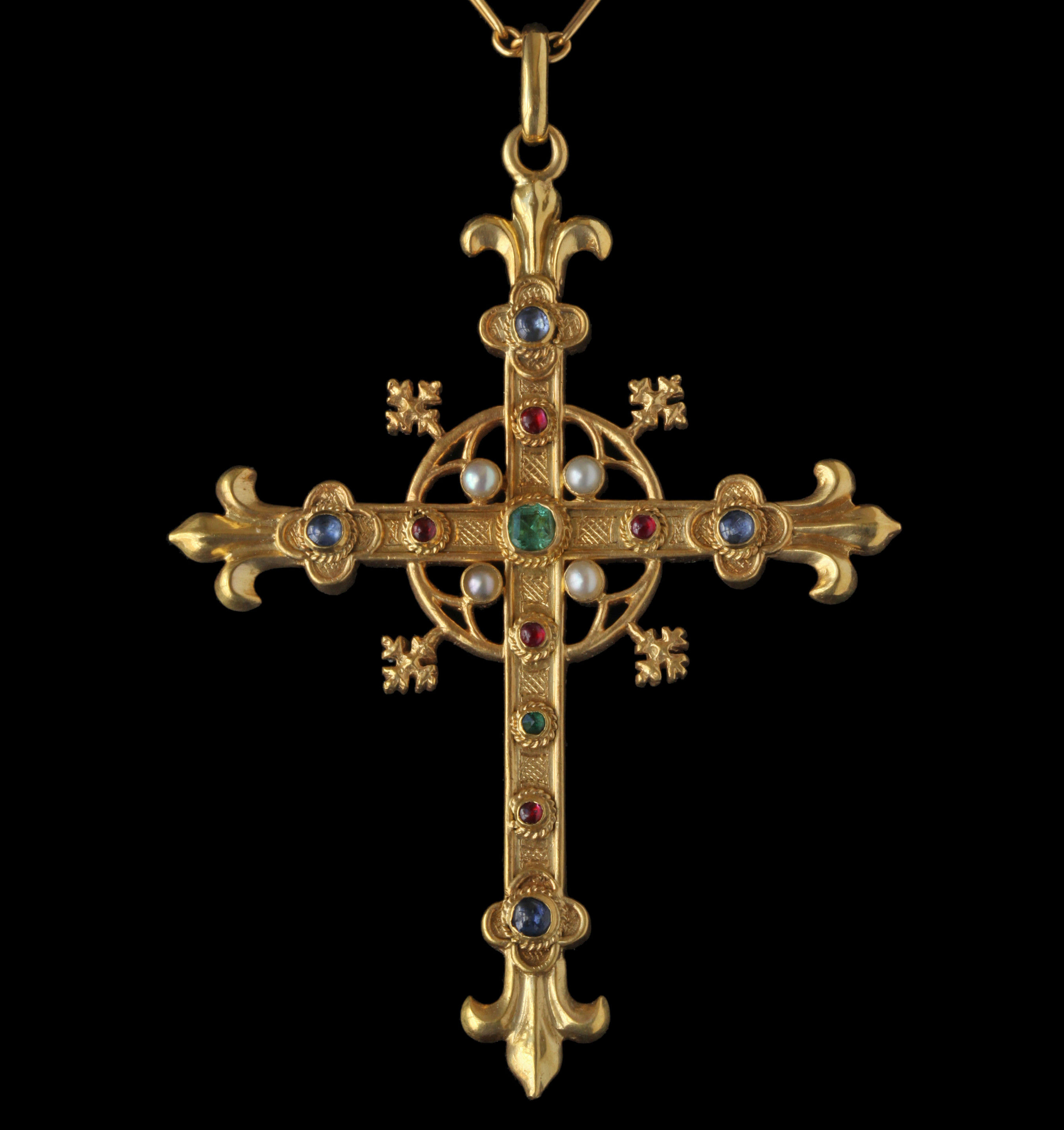 An exquisite reversible Latin Cross. This pectoral bejeweled pendant is really a Gothic treasure.