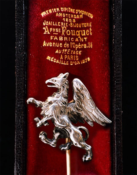 Fitted case, the silk marked: 'Premier diplome d'honneur, Amsterdam 1883 Joaillerie-bijouterie Alphse Fouquet fabricant Avenue de L'Opera 35, au 1er etage a Paris Medaille d'Or 1878
